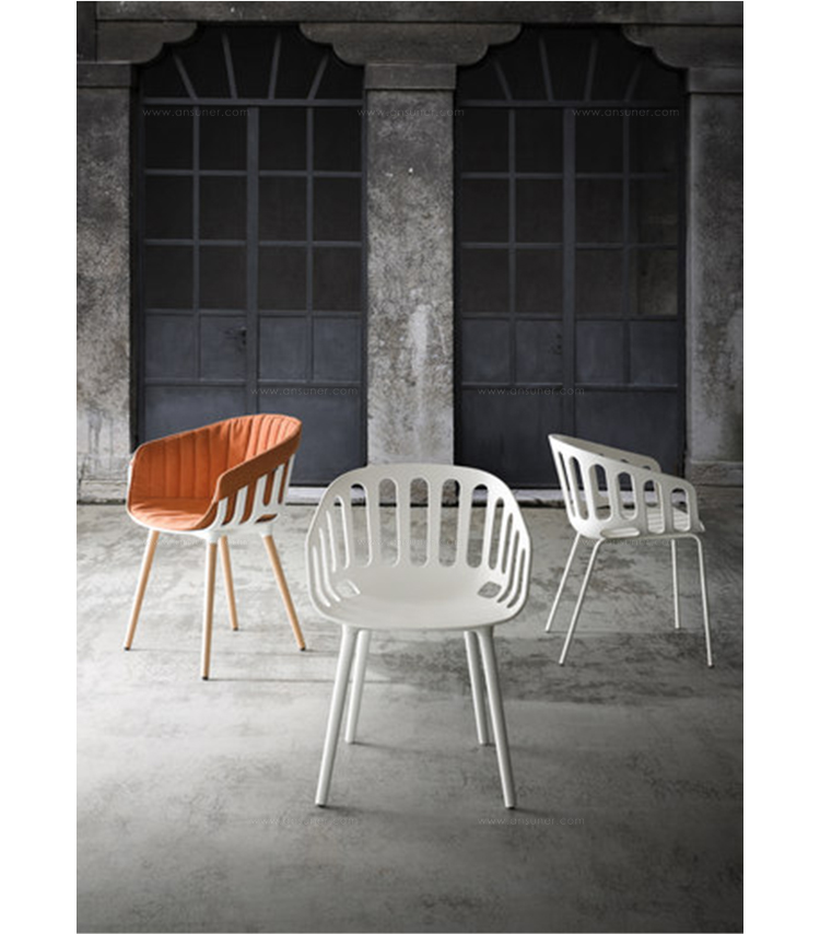 Basket Chair(篮子椅)是Gaber公司最多才多艺的家具系列之一,由意大利设计大师Alessandro Busana设计的。其多种可选颜色、材质、衬垫和框架的选择,是这个系列能够适用多种用途一个特别强有力的特征。篮子椅最重要的是惊人地好看。椅子设计灵感来自传统的柳条家具,具有明显的功能性,能强有力的与周围环境相协调,富有韵律感。椅子具有优雅图形组合的特点,可自由转换。可以选择各式各样的基础脚架,椅子很容易可叠起堆放的,可以在室内或室外使用,可用在休息室也可以用作商业、办公。经典的4腿的金属脚架,可选择6种不同颜色,设置有特殊软垫和防滑可移动垫,塑料和织物塑造了一个有独创性的对比。