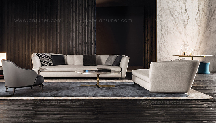 如果说Catlin边柜的设计崇尚简洁,那么材质的选择则旨在打造非凡的视觉和触觉效果。金属基座有着精致的十字形地面支撑腿,其中包括颇有趣味的组合:黑色压花搭配铬色或金色的抛光表面,打造出多种多样的风格。材料的搭配体现出非凡的优雅感,台面可以选择两种珍稀名贵的大理石,Arabescato Purple或Sahara Noir,两者都拥有抛光表面。