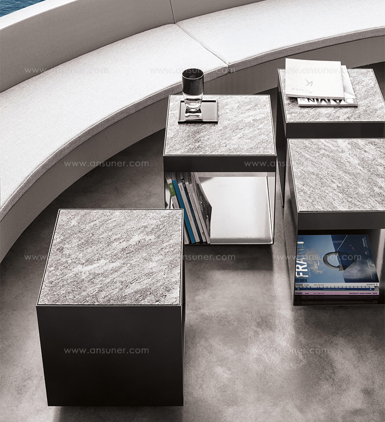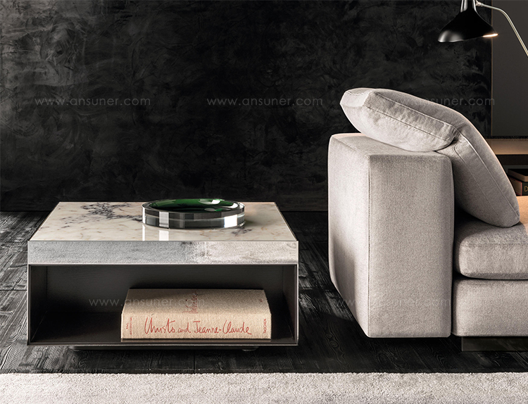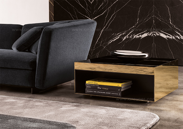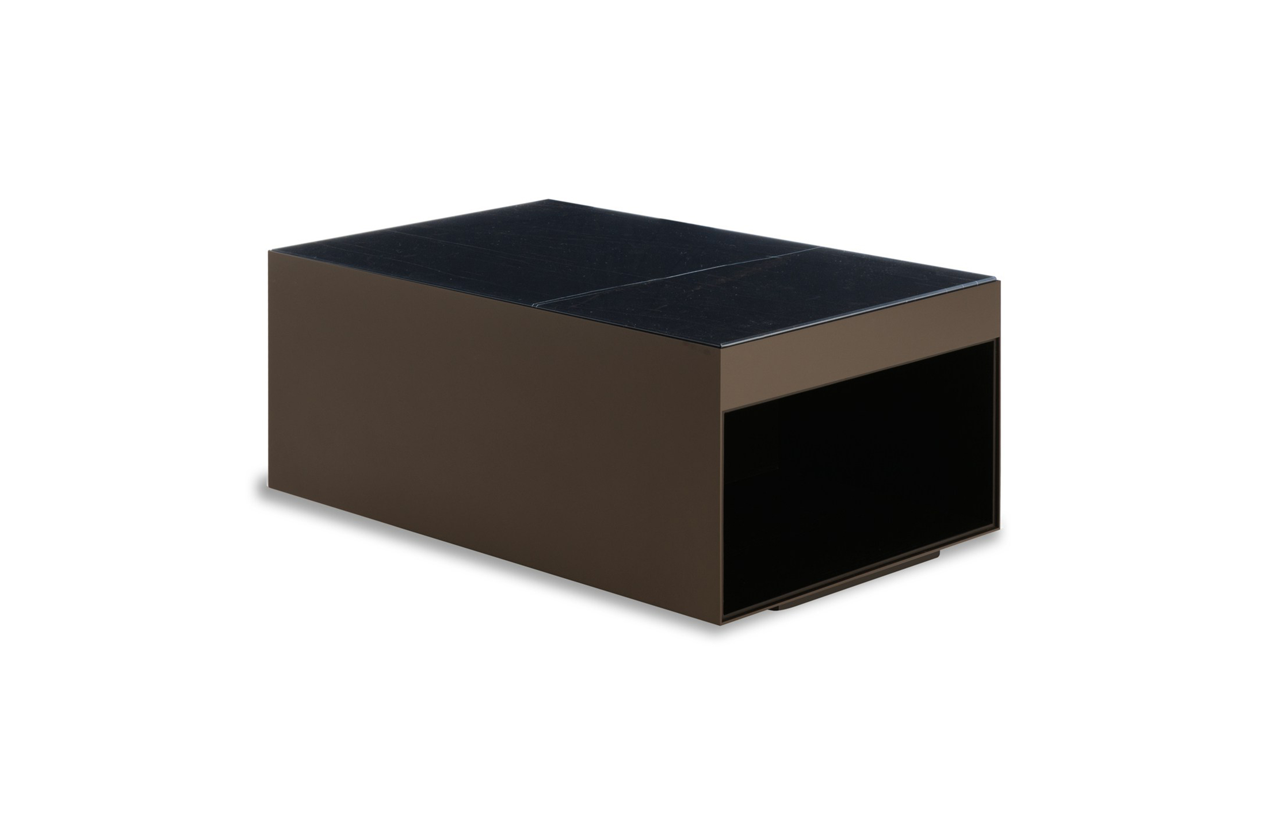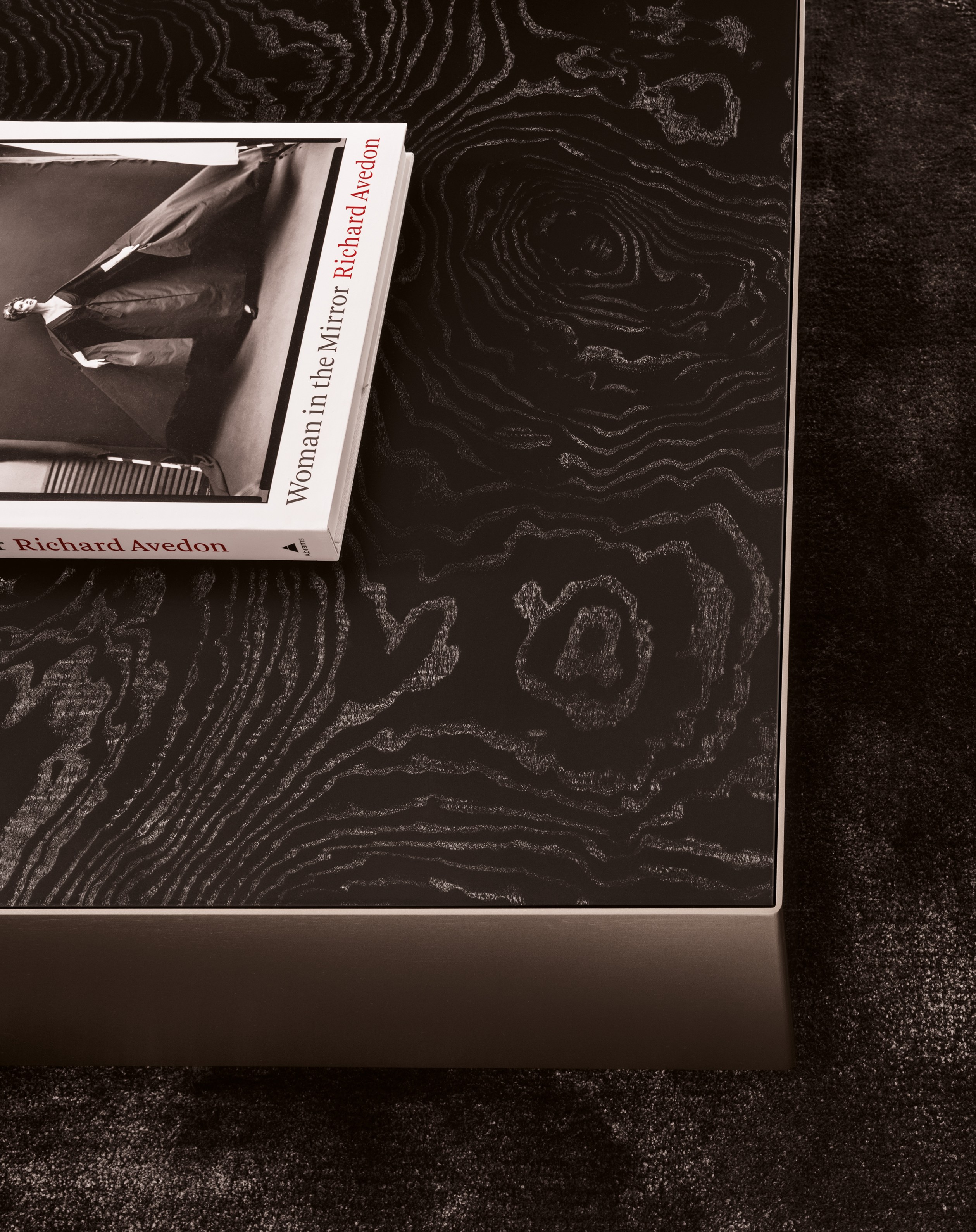 这是用于收纳贵重物品的边几系列,拥有纯粹而简洁的美学设计,有着精美绝伦的多种材质组合。这一边几家族拥有华贵的美学特质,因而也有着非同一般的功能,在提供实用置物表面的同时,呈现精美的装饰效果,具有50年代和60年代的米兰设计风格。金属构架的表面有亮铬色、亮金色和亚光铜色,嵌入构架的台面可谓画龙点睛,选用多种珍稀的大理石材质,其中包括Arabescato Purple、Sahara Noir和Rosso Levanto,或是Moka色的白蜡木、Moka色橡木。从建设性的角度来看,Elliott边几的内部储物空间可以用于摆放杂志或其他物件,有花岗石色的亮面漆或Moka色开孔橡木可供选择。金属材质的外部框架搭配包覆木质的内部框架,以此可以看出工艺的复杂性,同时平添一份温暖的质感,展现Elliott边几的名贵特质。