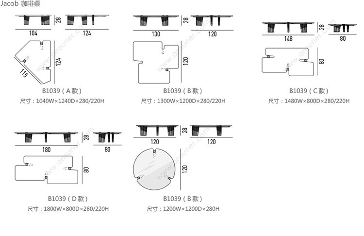 Jacob 咖啡桌 系列尺寸/示意图