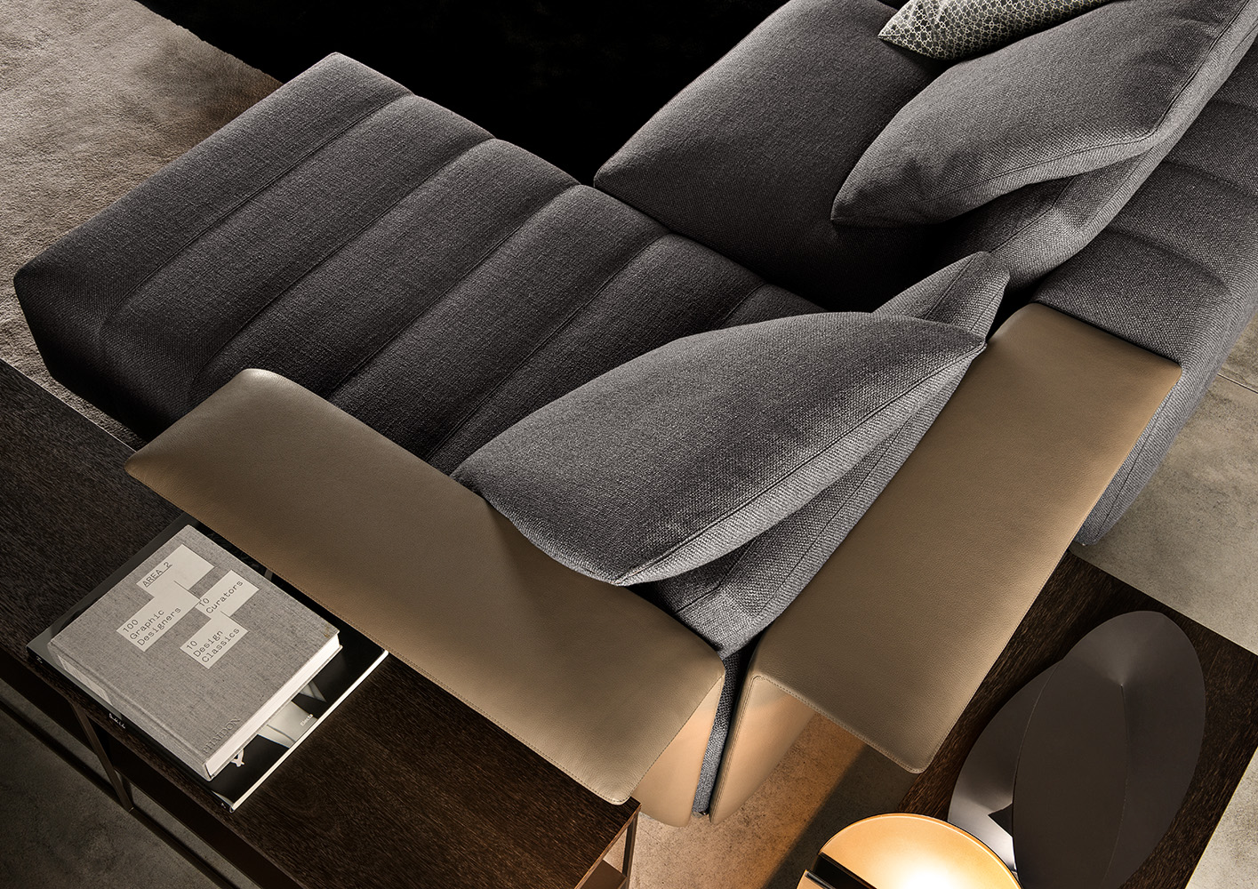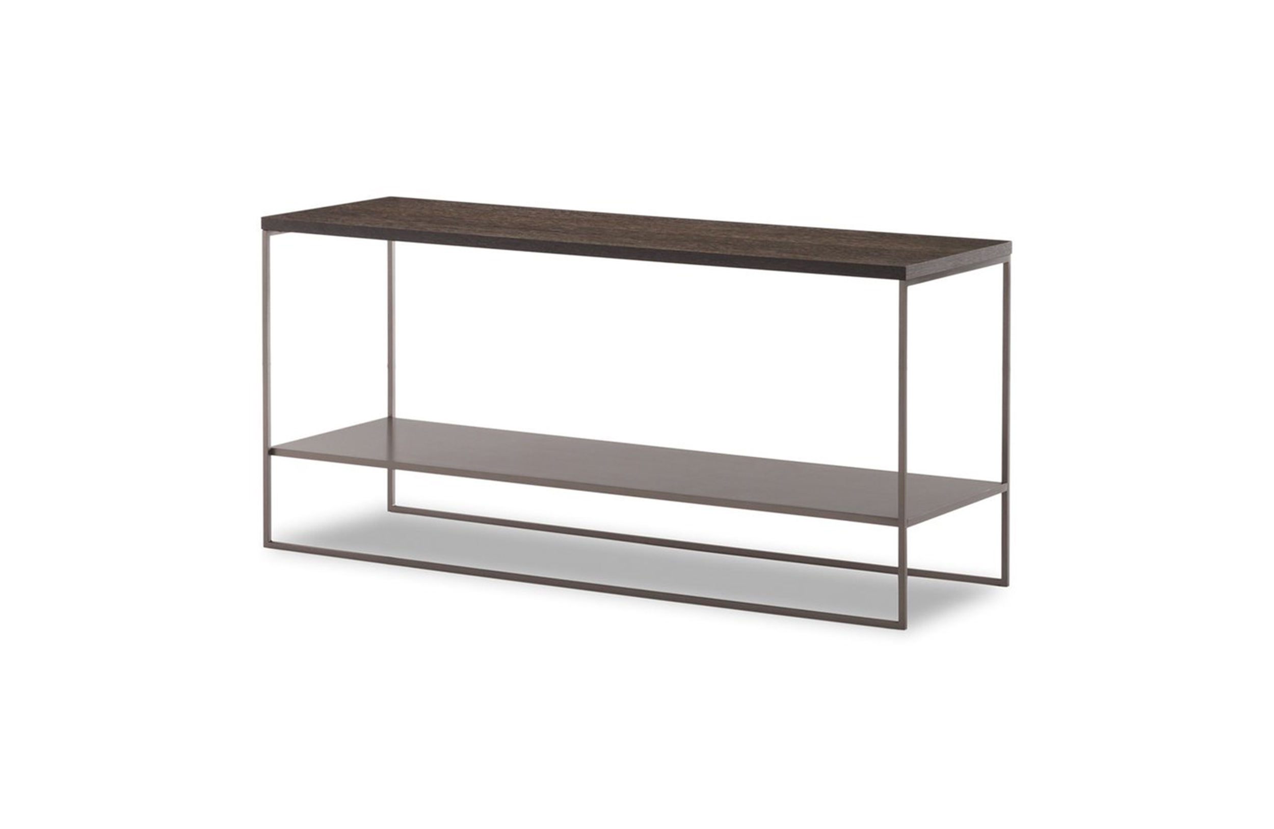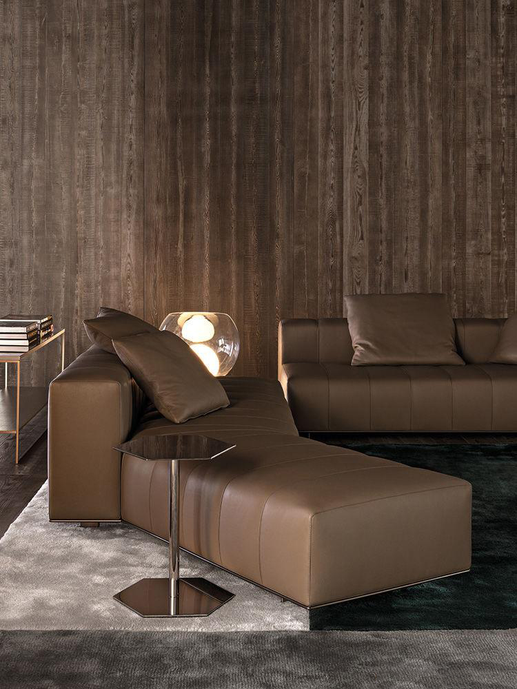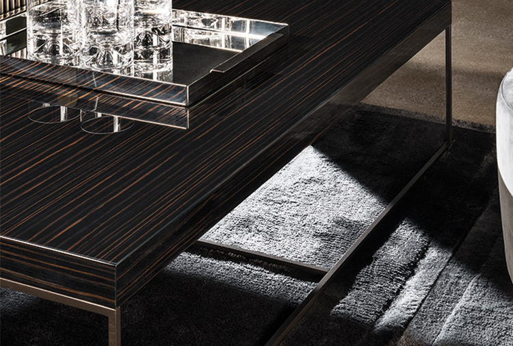 Calder家族有各种尺寸的边几和边桌,这一组全新的设计方案为其带来更为清新时尚的造型。铁架结构如今采用亚光浅铜色的表面。桌面也推出新版本:Sand色亮漆,米灰色的鲍迪豆木饰贴面,Bardiglio Nuvolato和Calacatta的大理石。中间层的桌面也为亚光浅铜漆面的金属。