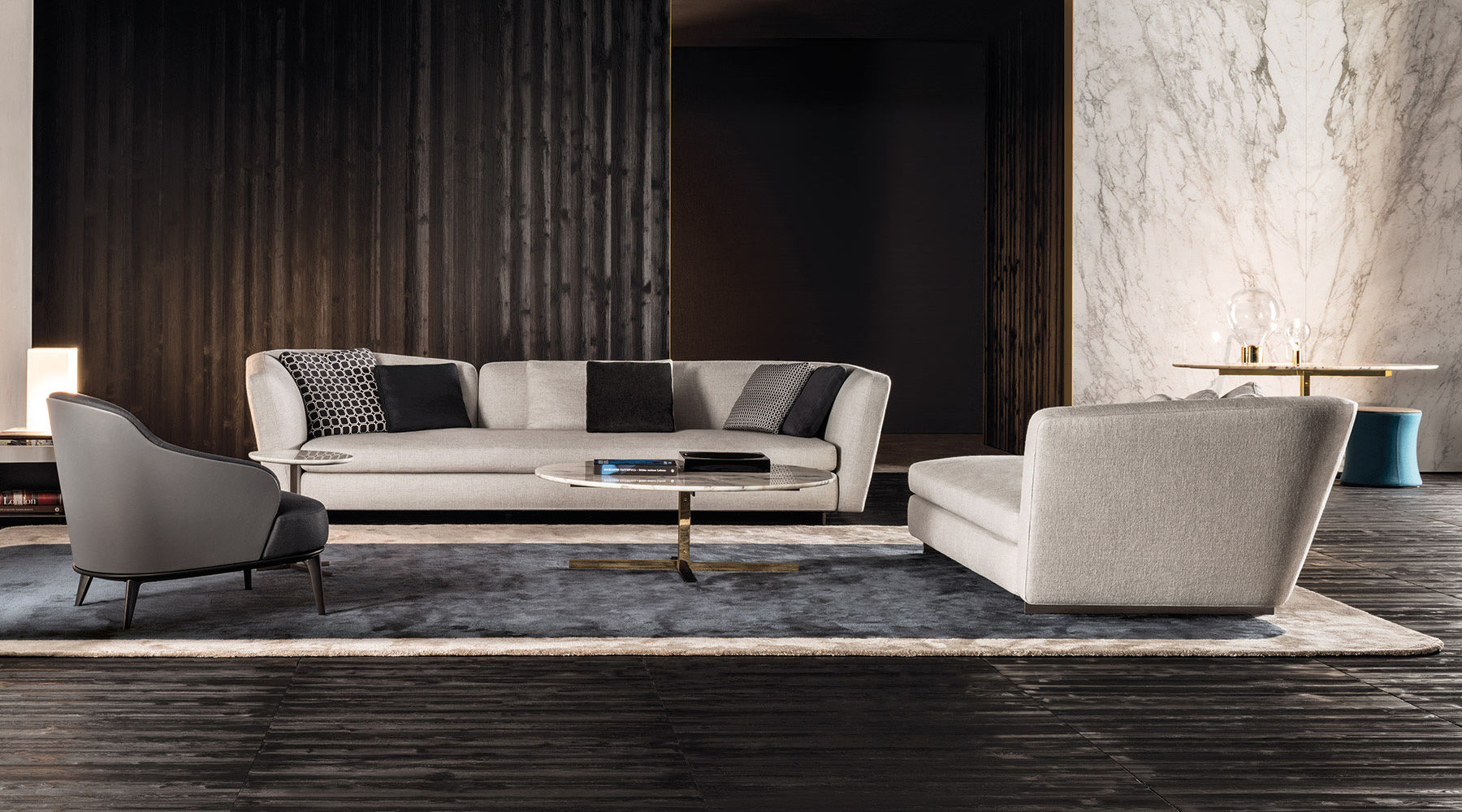 这款边几是专为搭配最新沙发座椅系列而设计的万能单品,基座为造型严谨的金属材质,台面为珍贵的大理石。Joy边几推出全新版本,采用椭圆形的大理石台面,与基座一同打造出不对称的效果,因而Joy “Jut Out”边几尤其适合搭配全新系列的沙发座椅。基座为十字形支撑,采用铜色金属材质。Joy “Jut Out”边几的台面采用圆边设计,还可以选用名贵的大理石材质:Arabescato Purple、Sahara Noir、Rosso Levanto,全部为抛光表面。