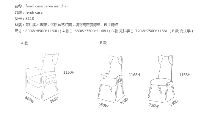 带扶手布艺 720 w|750 d|1168 h -