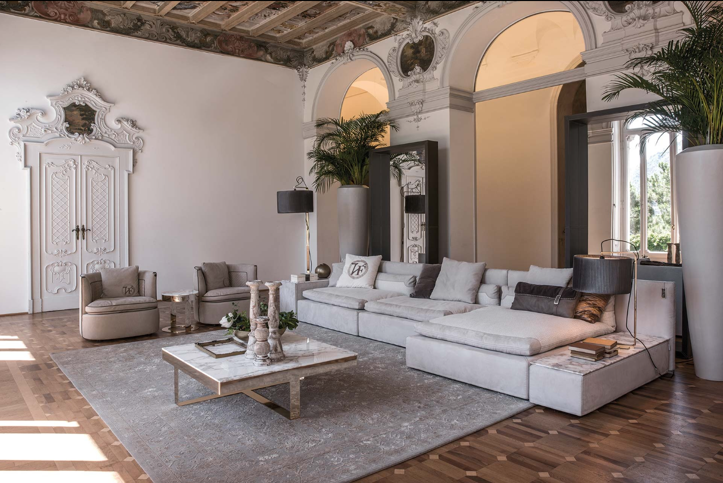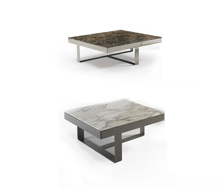 无论是正方形还是圆形,它把大理石的光泽和精致的金属底座或皮革的温暖结合起来。