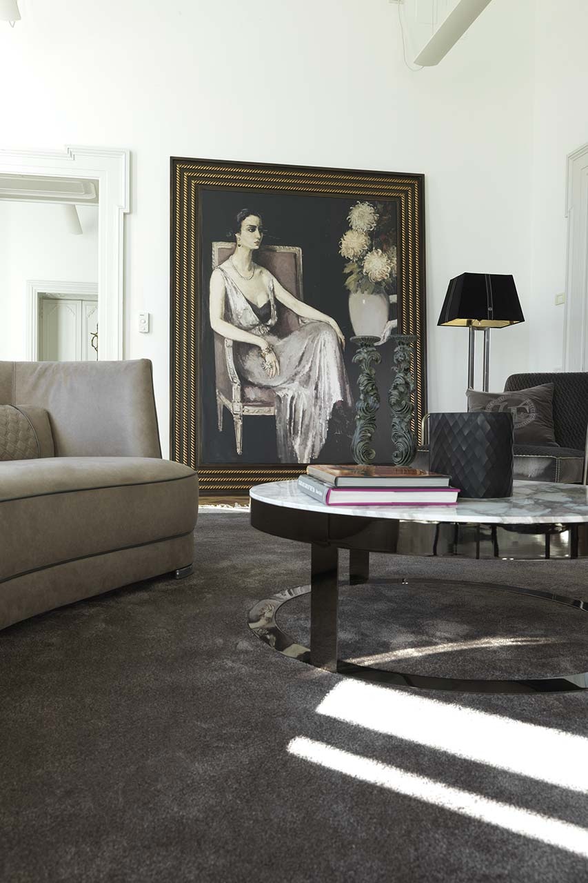 无论是正方形还是圆形,它把大理石的光泽和精致的金属底座或皮革的温暖结合起来。