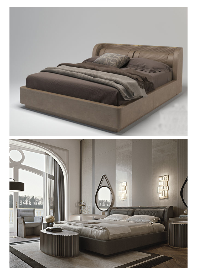 古典风格满足现代性在这床上流畅简洁的线条,丰富的床头板,优雅的刺绣和珍贵的拉链。