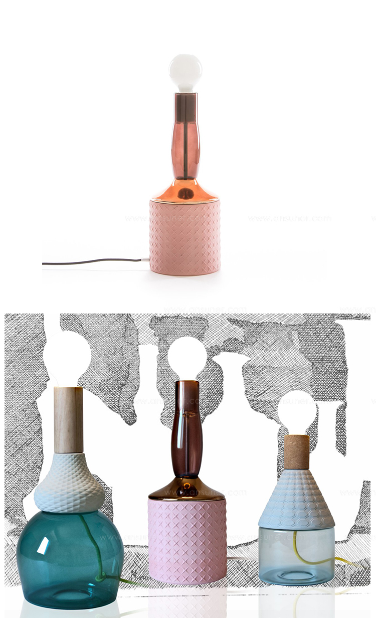 造型如复古的瓷器,带有软木材质的自然材料,可以协调和放松照亮您的环境,长200cm的彩色织物电线,可以在房间中自由移动和放置。