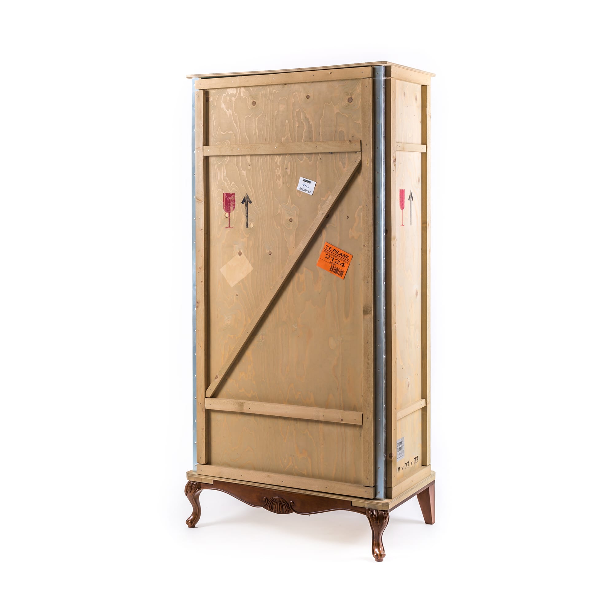 这款现代床头柜由Marcantonio Raimondi Malerba为Seletti设计,它融合了两种不同风格的设计。一个标有各种标签和标志的包装盒配上华丽的路易十四腿。明亮的绿色内部有一个架子和两个存储空间。手工制作的实木,这出口科莫床头柜是令人印象深刻的耐用性,因为它是在其独特的设计。它可以单独使用,在卧室或与来自ExportComo系列的其他家具一起创建一个焦点。意大利制造。