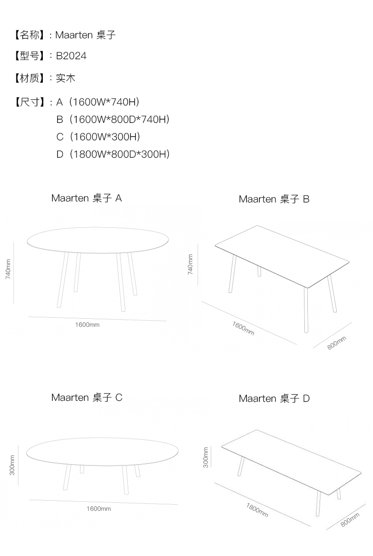 Maarten 桌子 系列尺寸/示意图