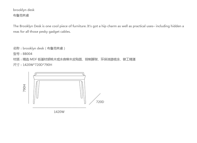 brooklyn desk(布鲁克林桌)是一件非常酷炫的家具,非常迷人且具有实用性,并设置了隐藏的区域给那些令人烦恼的小工具和电缆绳线。制作采用精选MDF板基材胡桃木或水曲柳木皮贴面、钢制脚架、环保油漆喷涂,做工精湛细致,品质一流。