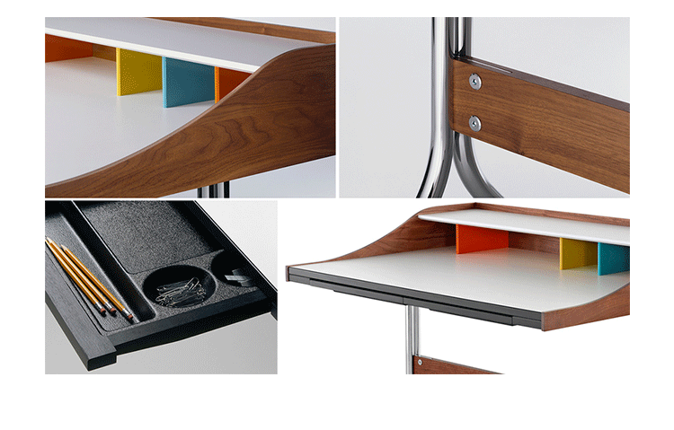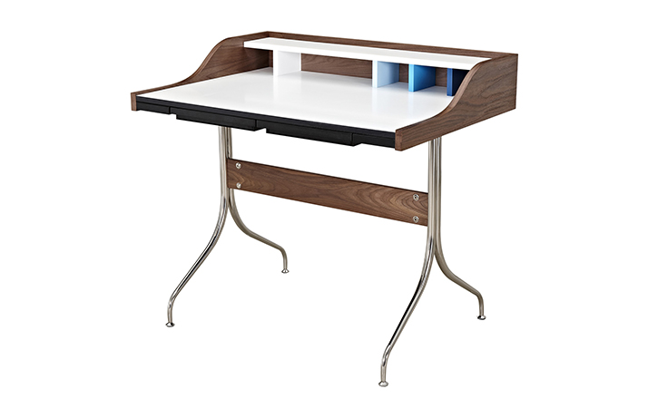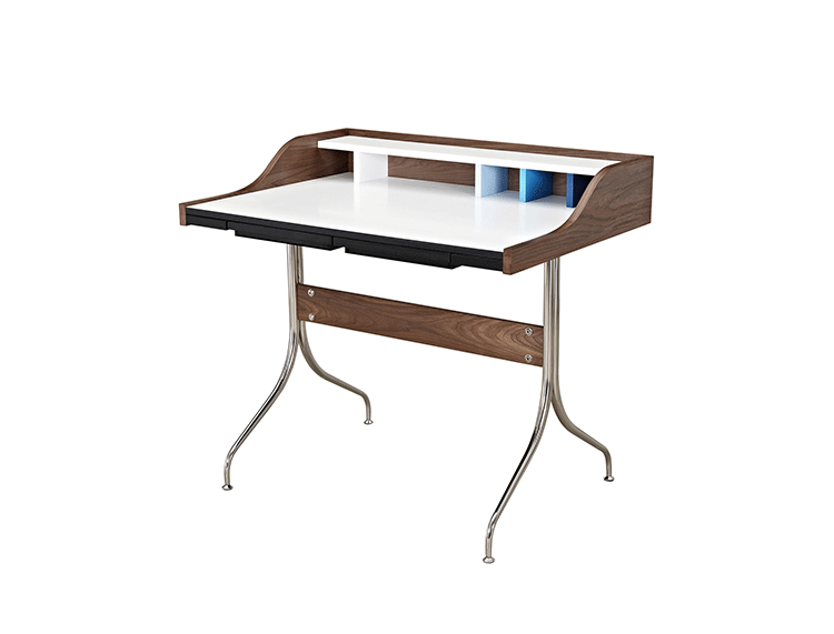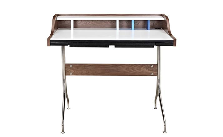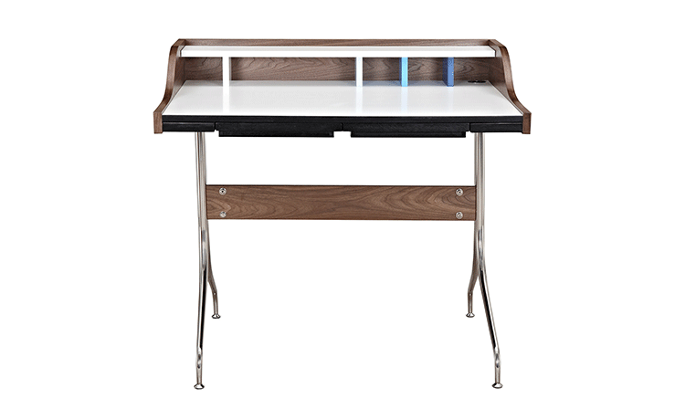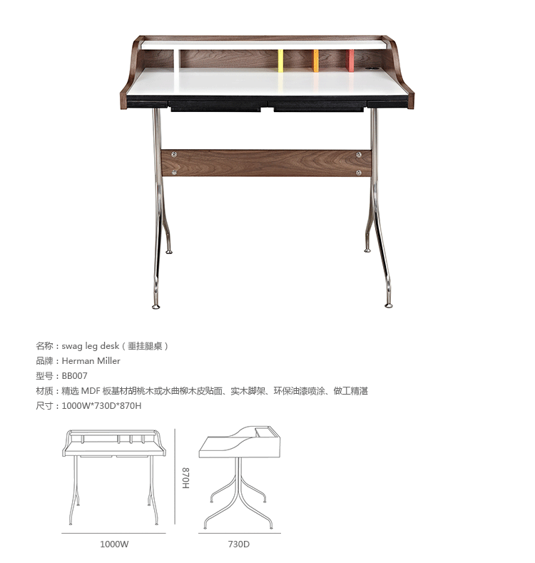 neil desk(尼尔桌)简直是艺术家的梦想--明亮的白色工作区与多彩的金属和木头混合的特征,有着迷人的中世纪设计风格。它是一个永恒的设计,可以使用在任何家庭的办公室。制作采用精选MDF板基材胡桃木或水曲柳木皮贴面、实木脚架、环保油漆喷涂,做工精湛,品质一流。
