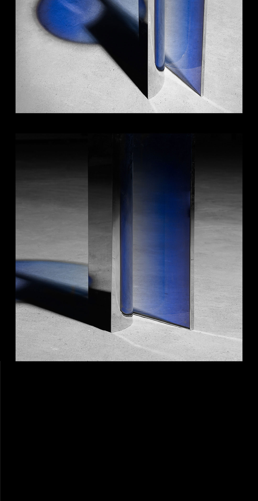 设计整体呈现具厚度的透明体,穿透可视的材质叠加与空间体积感,强化玻璃在空间的存在。 它既是存在的也是不存在的。从有至无的空间消逝,从有至无的视觉深渊。