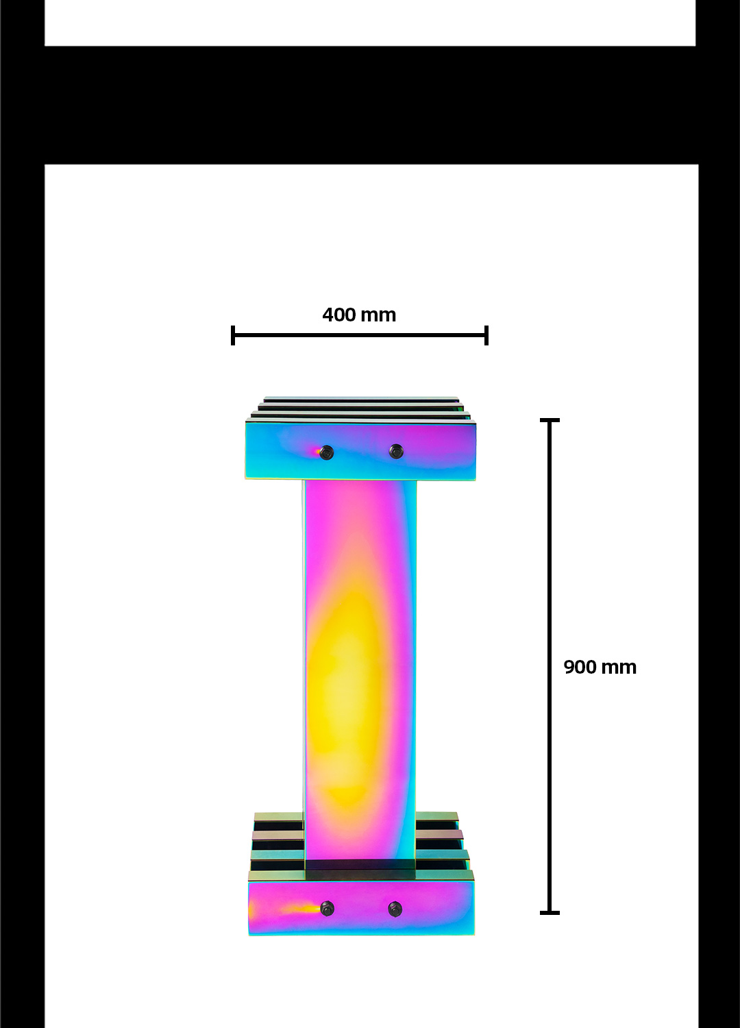 成熟常态的工艺完成规律性标准的矩形折面,与不可确定变幻成色的电镀技术,理性与非理性交集的不可控结果——不造,非常态。