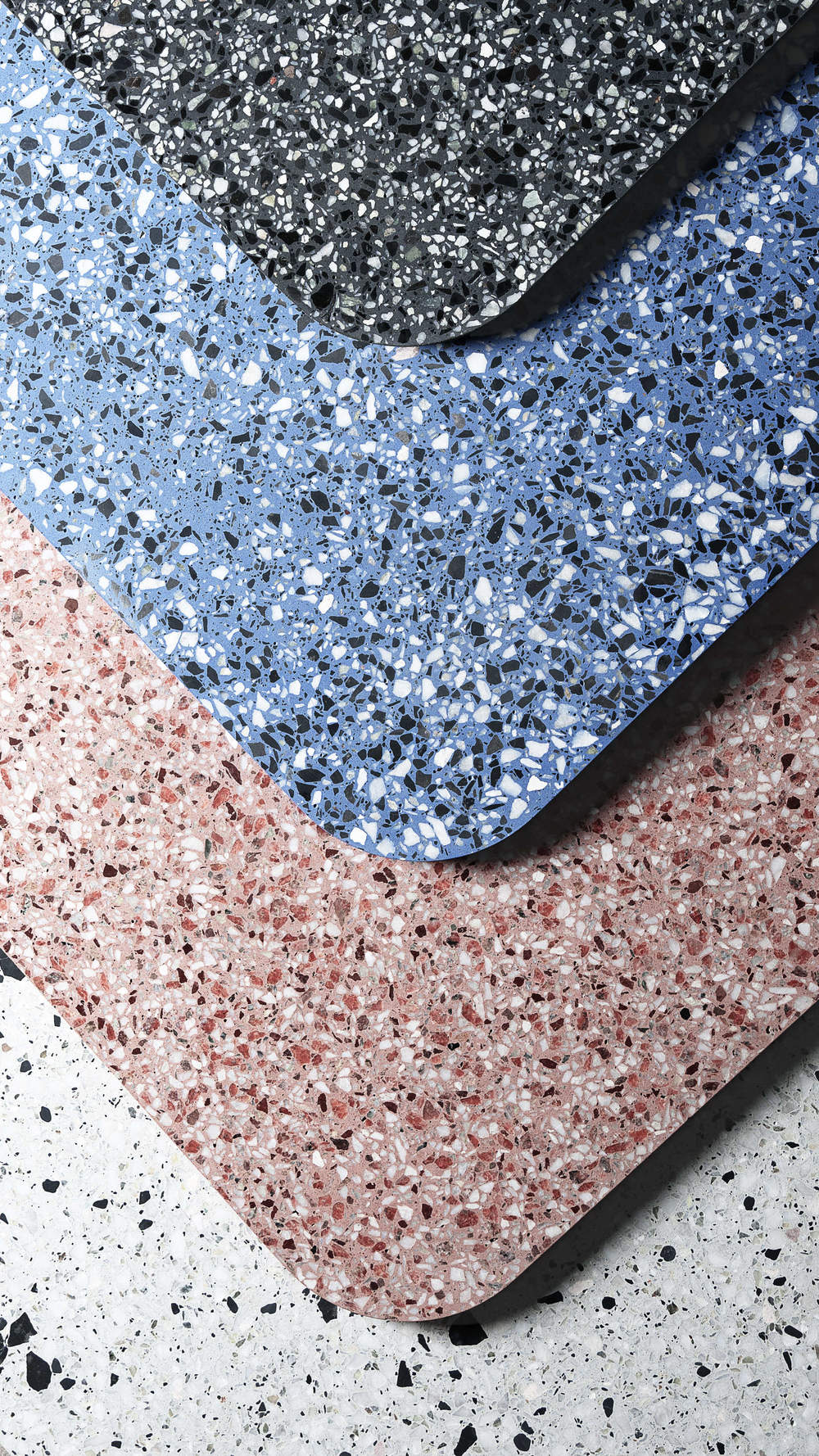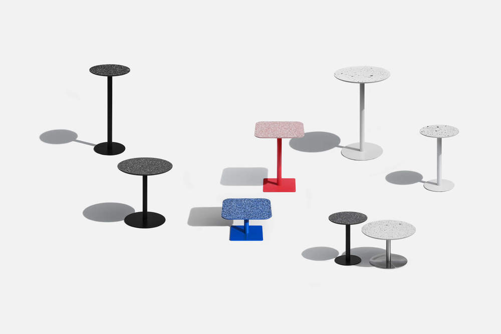 本产品采用了混凝土掺入石英粒的水磨石,随机分布的石英为家具提供了足够的装饰,既简朴又精致。 水磨石板材与支架通过巧妙的结构连结,垂直错开的支架使产品整体更具形式感。 倒角使得整体更具细节,利落的直线,是本土创造追求并相信的简单,和直接的材质表达的手法,没有多余的装饰造型线。