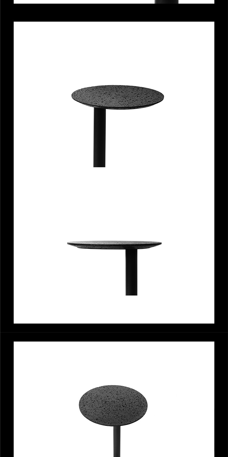 洞黑系列,洞悉秘密,来自地心的喷发。极想把洞石的芳华寂寞倾述出来,呈现于日常并使用它。尝试将洞石塑造各种形态,原材,呈浅灰色;亚光,颜色渐渐加黑;抛光,纯黑了。三种状态,魅力各异。深入践行,洞石的特性愈显,吸音、防水、防火、保温、隔热,耐酸碱、耐腐蚀、耐沾污、耐霉变,且无污染,无放射性。惊喜不断,质量很轻的洞石,居然强度很高,轻、硬,可塑性强,气孔式的通透,赋予了极简中的奢华。触目的拙,爱不释手。
