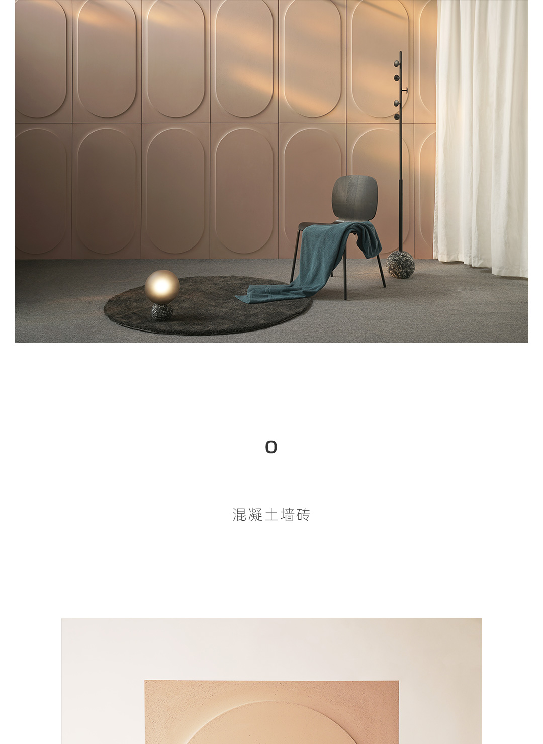 O从方与圆直线与曲线平面与弧面之间构建一种对偶关系,从罗马斗兽场建筑中得到启发,用当代的设计语言形式进行诠释,一个圆象征着一个空间一种视角展开想象,从不同视角中看到自我的认知和理解; 圆从方中向外凸起形成正负形的立体空间,从建筑室外走向室内,在空间中与声音空气阳光产生关系,有形和无形的交织富有装饰性和想象力;