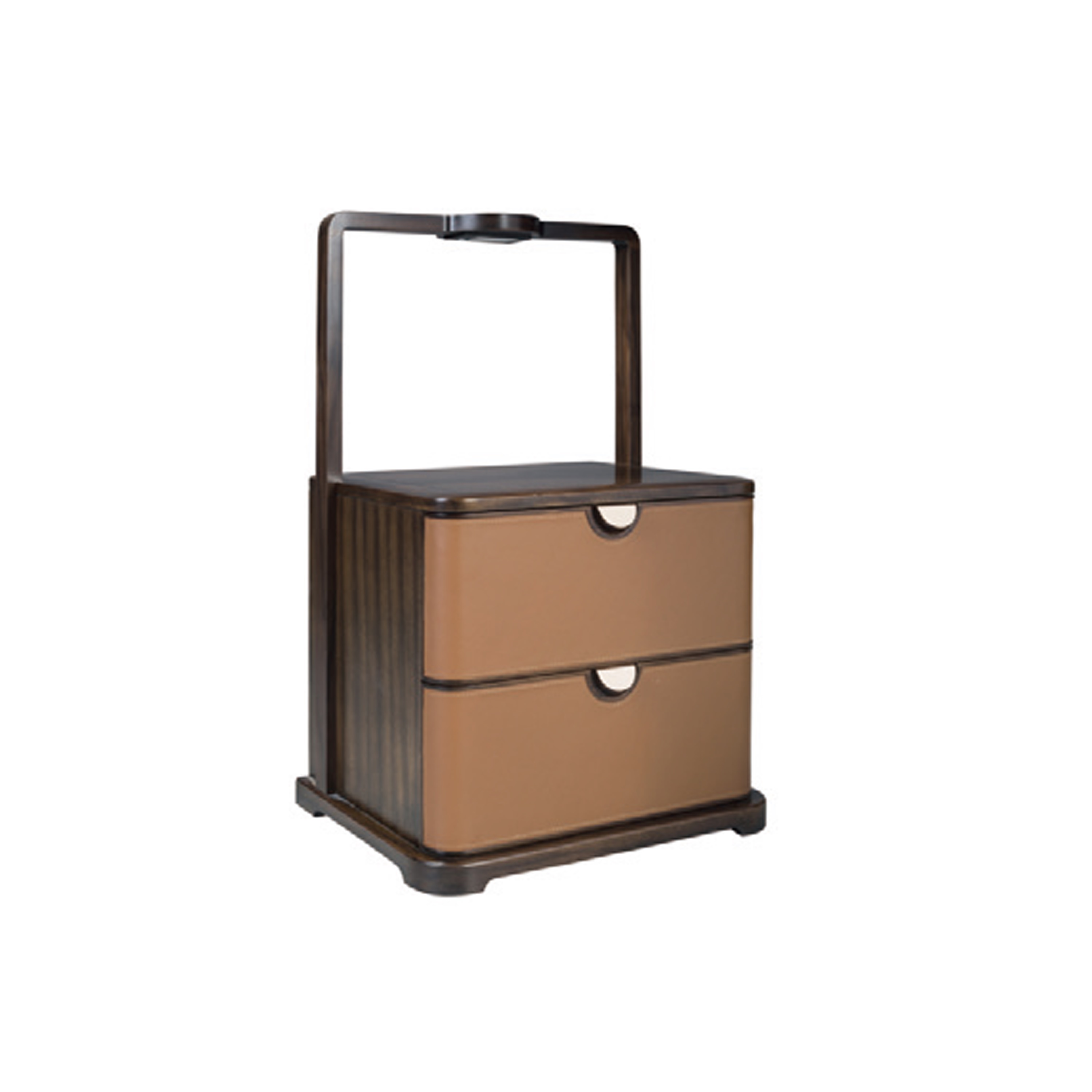 1.整体外形源于中式提篮,细巧颀长,虚实相应,彰显文人高雅。 2.顶部设计小圆盘置物,美感与实用兼具。 3.铜制半圆拉手,点睛之笔,充满新海派韵味的同时,价值感十足。 4.双色设计,对比明快,增加视觉跳跃感与家具层次感。