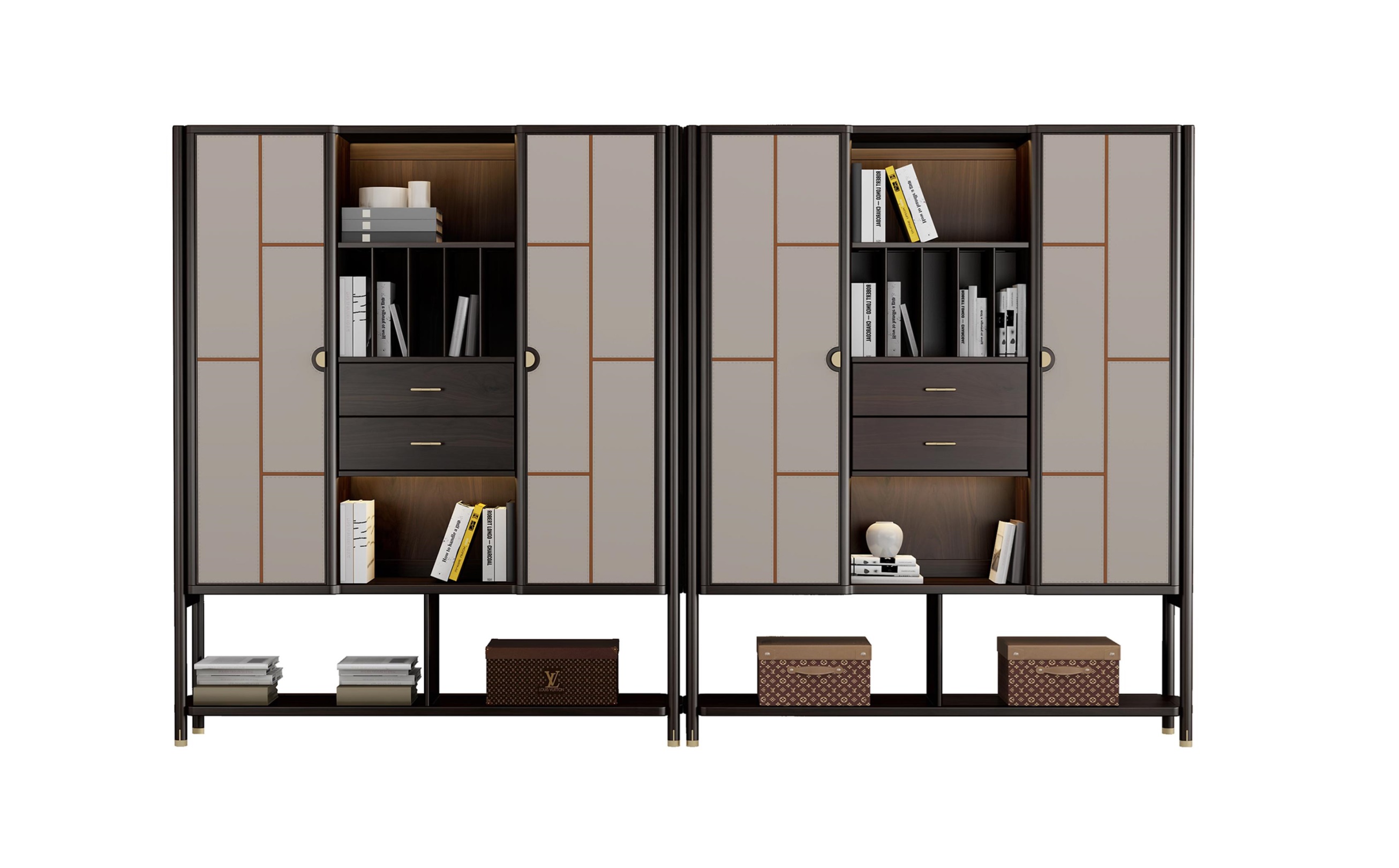 1.整体造型源于明式柜类家具形制,简洁干练,通透感强。 2.半封闭式柜门设计,兼具储藏与展示功能,装点家居,便捷生活。 3.半圆形铜把手的设计,在保证实用性的同时,赋予独特中式韵味,彰显价值。 4.铜脚设计,赋予中式韵味的同时以防磨损。