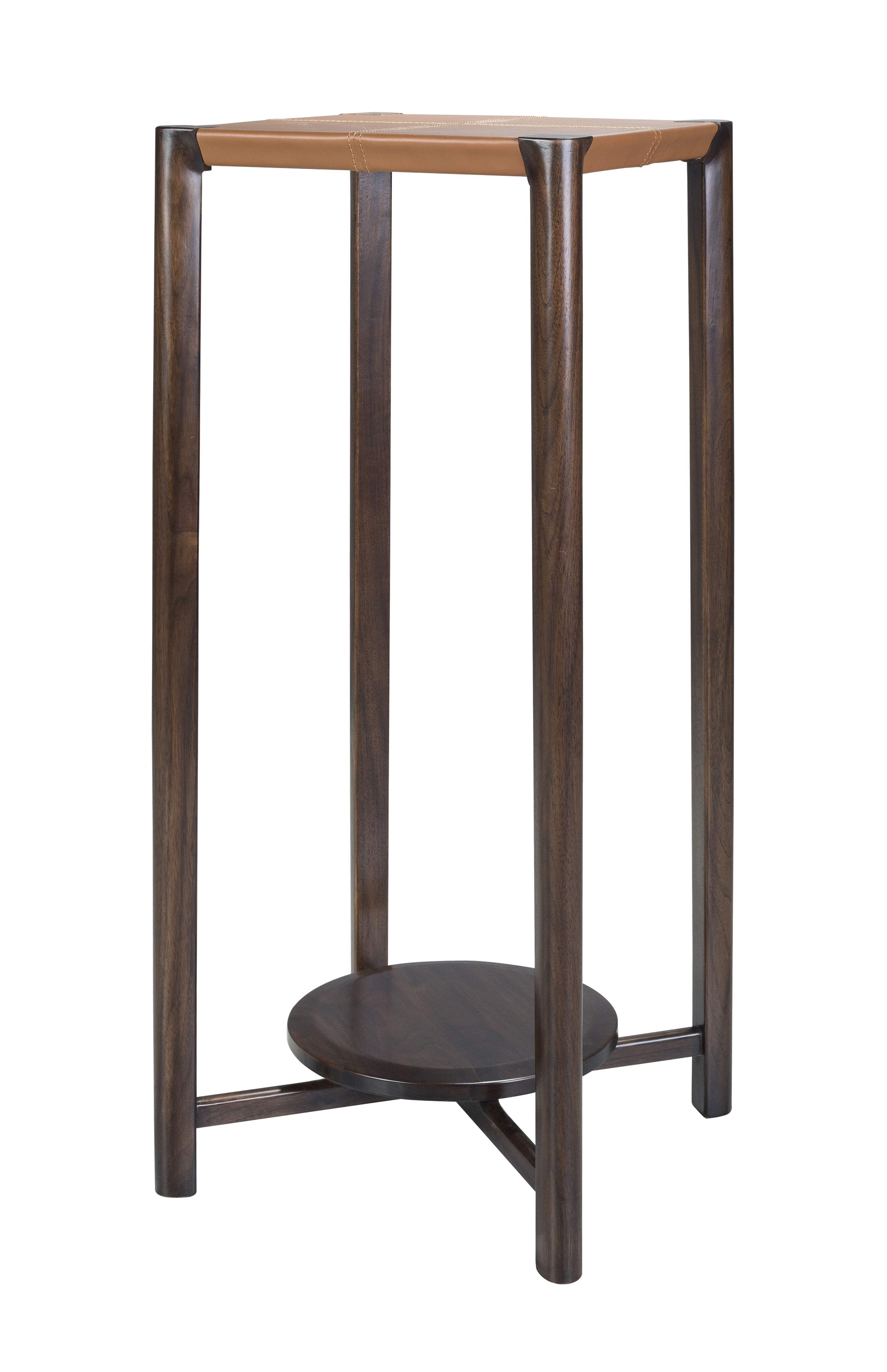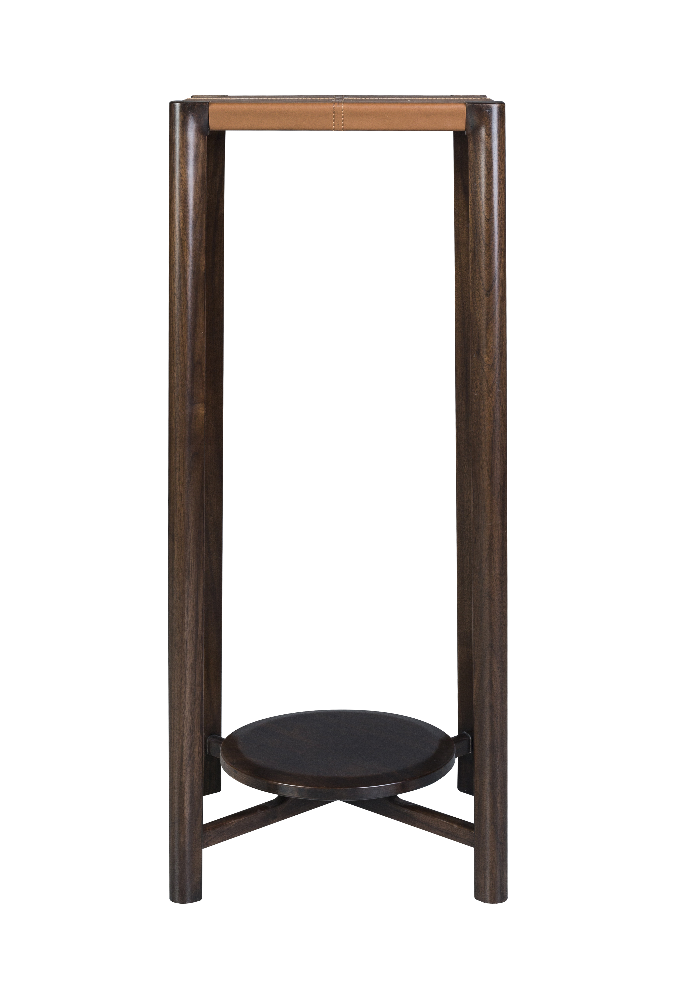 1.源于明式花架形制,以线为主,明朗轻快。 2.腿部支撑上收下分,具有很好的视觉稳定感,稳重大方。 3.顶部进口牛皮包饰,质感高雅,搭配自然胡桃木纹,双色设计,易于打理。 4.底部设计可置物平台,增加使用功能。