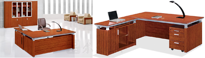 ※ 此款班台木纹鲜明,配以银色为点缀,独特的线形设计韵含了一种灵气,使人眼前一亮。多元化的桌面设计能满足您各种组合变换、空间互补的要求。附助储物装置方面则备有流动式矮柜及档柜。