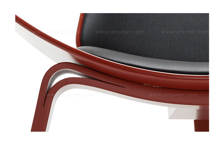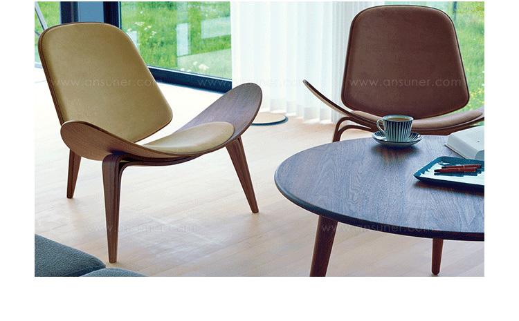 Wegner shell chair(三脚休闲椅)是由Hans J. Wegner设计的,椅子一共有三个脚,座椅像一个笑脸,又像胡子,设计师给他的编号为:CH07,外形现代、美观、独特,既可以有来看书读报,也可以用来休闲娱乐,成了20世纪最佳的设计之一。