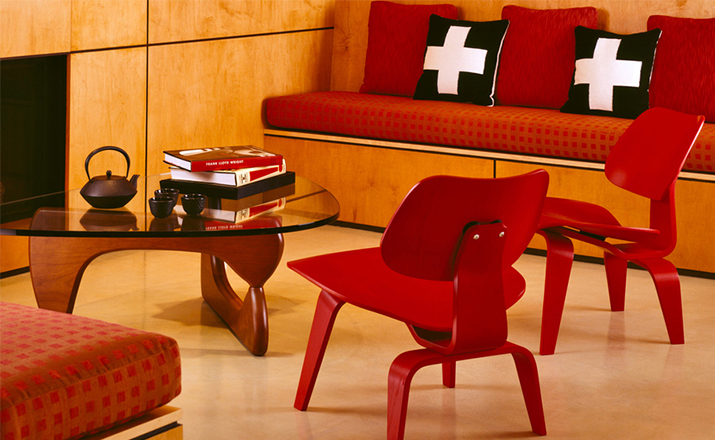 Designers Charles and Ray Eames established their long and legendary relationship with Herman Miller in 1946 with the boldly original molded plywood dining and lounge chairs.Designed to comfortably fit the body,the sculpted form of the molded plywood chairs are produced using thin sheets of lightweight veneer gently molded into curved shapes with natural rubber shock mounts to absorb movement.Since then,the chairs'aesthetic integrity,enduring charm, and comfort have earned it recognition as the best of modern design.Available in either a lounge or dining versions with chrome-plated steel or wood legs.