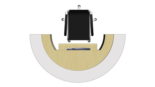 材质说明:台面为白色人造石,台休为白色铝单板,中间槽为3M贴膜,拉丝不锈钢踢脚,白枫木饰面,键盘架。