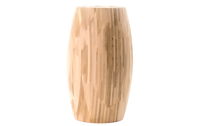 The Motley drums show innovation in function, technique and form.Small pieces of wood are knitted together with nger-joints into a large 12mm thick sheet(cedar).Together they make a solid block.The cedar drums are highly suitable for interior and exterior use.The birch drums are only suitable for indoor use.Table-seat-pedestal.