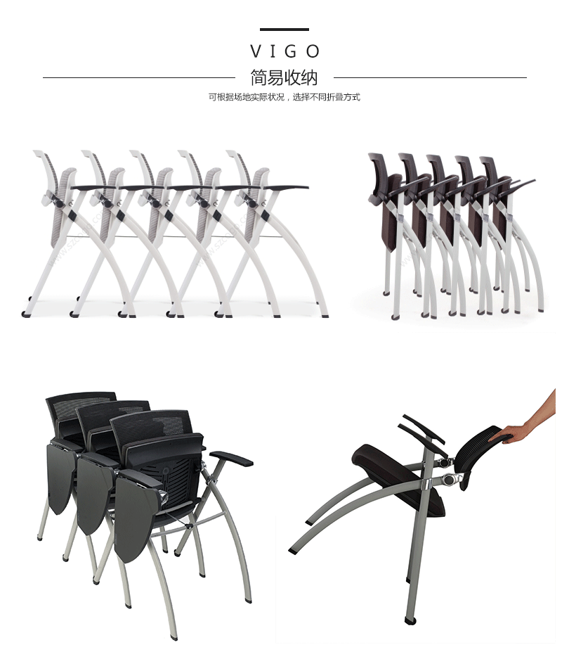 Vigo是业内第一款兼顾培训与会客功能的现代办公座椅,整椅外观简洁雅致,设计巧妙。精巧的悬浮背板链接铝合金枢轴可随人体坐姿变化,紧密贴合用户后背,为长时间培训、会谈提供人性化的座椅体验;会谈或培训后,可将Vigo座板折叠收纳,节省办公空间。