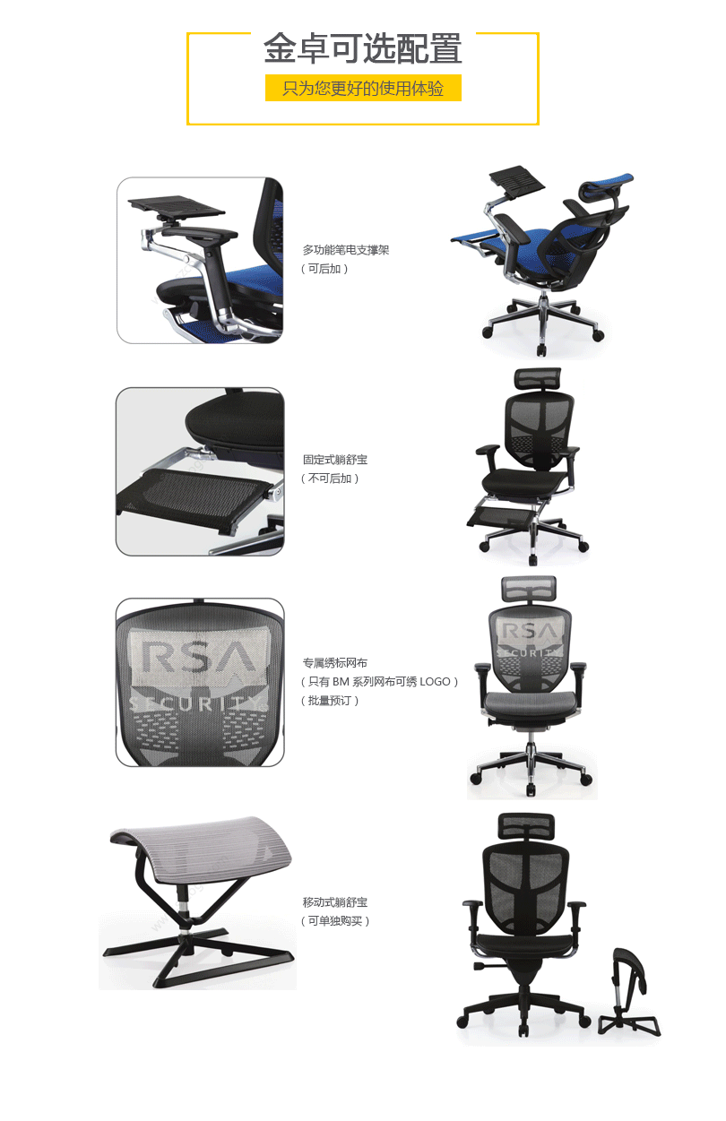 金卓的优美设计有利于持久的舒适和美感。工学椅的结构和功能利用同步倾仰底盘控制功能锁定,滑座和高度调节。高度和角度均可调的扶手和头枕都包含在这张特有的工学椅里。