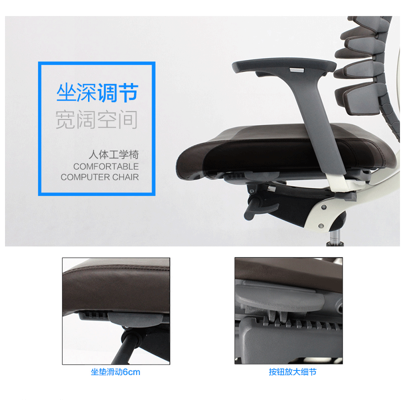 龙骨椅模拟人体脊椎骨造型及特点,并运用贴合返回技术,使座椅自动贴合背部。龙骨椅是一款符合人体工学的全功能性办公椅,力求使用者能充分理解其人性化的设计及达到最舒适的调节。