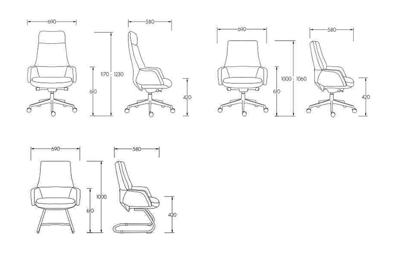 690W×580D×1180-1260H