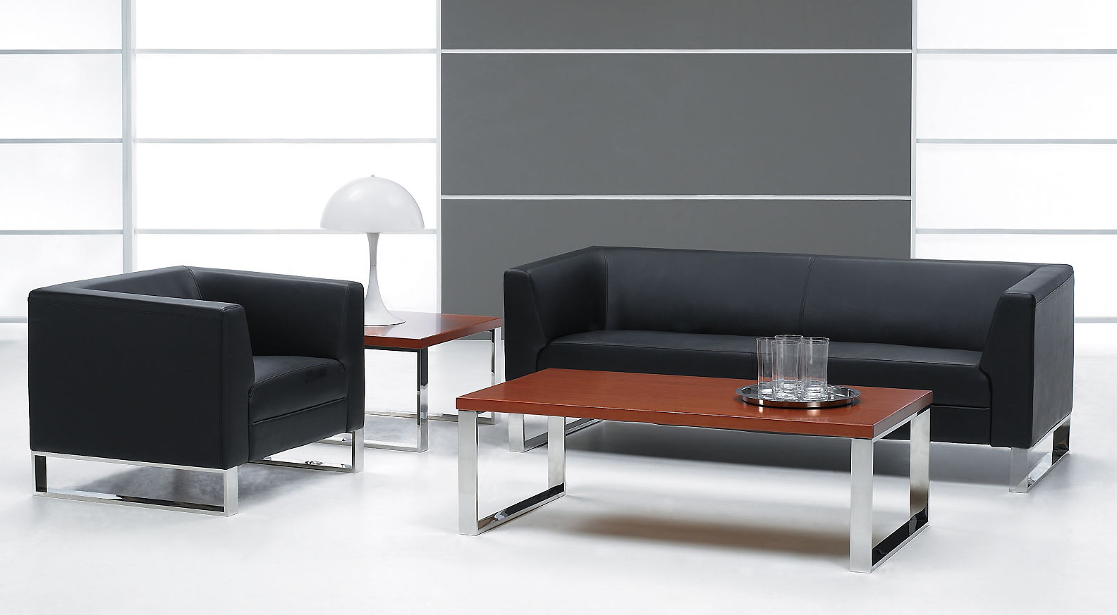 ※ 上图为系统推荐三人位真皮沙发,单人位真皮沙发,搭配着框形茶几,满足您办公休闲区需要。