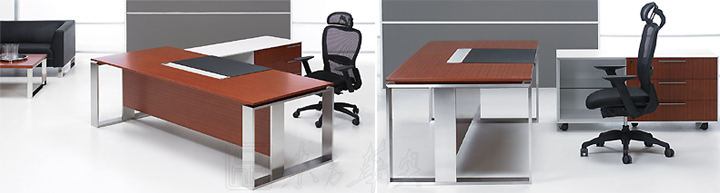 ※ 框型钢脚,配木质挡板,稳固性强,造形新颖。铝合金线盒,黑色皮垫,精致高档,配置复副侧柜样式如图,不锈钢系列面板选用欧洲枫木木皮,泰柚木皮,或淡雅,或热烈,柜桶面辅以砂纹灰,砂纹白素色薄边,使清逸与热烈得以沉稳,并结合不锈钢的刚冷光泽,溶合呈现后现代工业体系产品色彩风格!