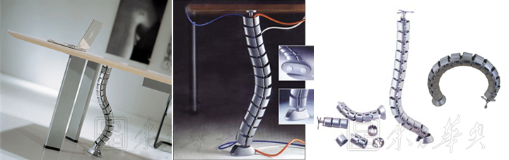 ※ 上图为会议台的走线蛇形管,为方便会议能有系统地进行,可应附资料及数据的输出,对零乱的多线进行归集,创造清爽,干净的办公环境!