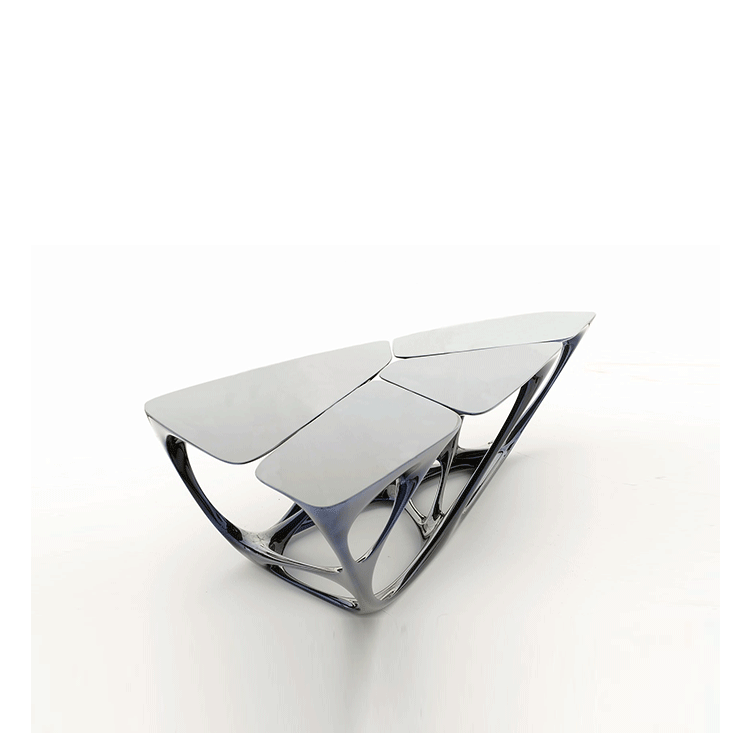 Zaha Hadid(扎哈·哈迪德)不仅是一位世界闻名的伟大建筑设计师,同时她在家具设计界的成就丝毫不逊于她在建筑领域的成就。2004年度这位伊拉克裔英国女建筑师以设计中国台湾台中古根汉美术馆而荣获建筑界最高荣誉普利兹克奖,是首位获此殊荣的女性建筑师。53岁的她,也是最年轻的获得者之一。她设计的这款Mesa Table(梅萨桌)以流体的空间造型,混合革命性的美学构建主义,让人叹为观止,座子就像一只宇宙飞船,剥离地面、 结构、 表面,创造一个“二元次”平面,这已经成为结构但空洞像固体一样表达形式。当一端被上无形的引力所吸引,它倾斜的对称性、 船头拖而下方伸展运动弹性来容纳扭曲的结构以及它的其他形式。桌子采用进口玻璃钢纤维压模一体成型椅身、表面优质烤漆。