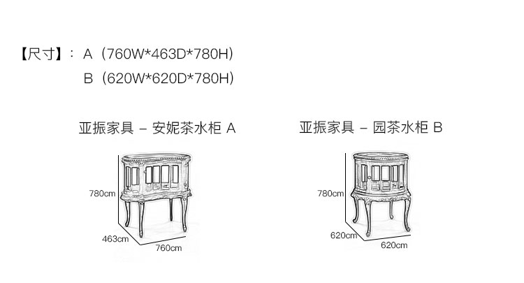 亚振家具 - 安妮茶水柜 产品尺寸/示意图