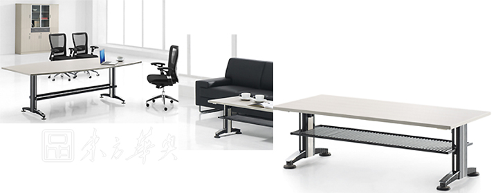 ※ 上图为会议桌的场景图,台面板可以做船型,也可做直型,根据需要的风格进行配套选择。