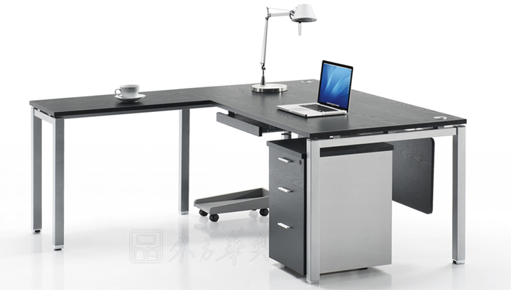 ※ 上图为时尚中班台,追求造型简约时尚,也保证了主台面的整体结构以及台面的抗弯强度。长的副侧台节省使用空间,扩大储存空间。