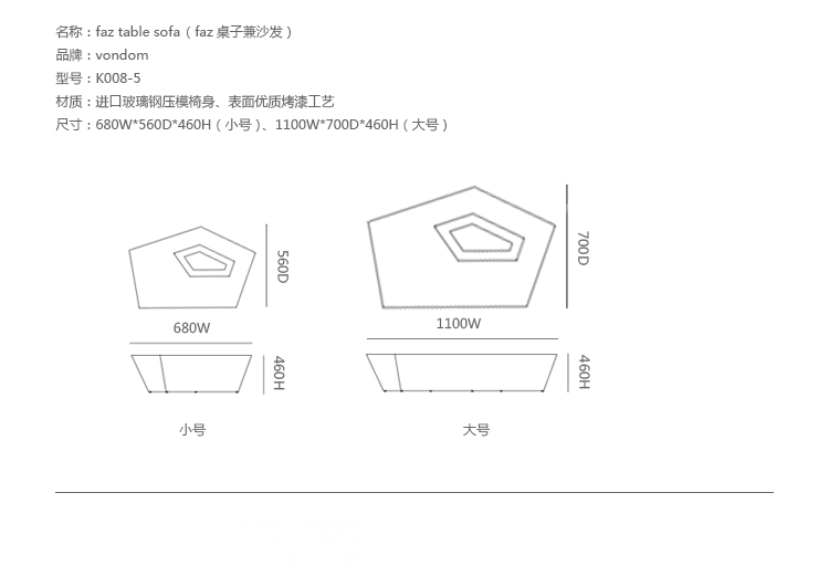 FAZ是西班牙著名建筑师Ramon Esteve为VONDOM公司设计的组合家具和花盆系列。Ramon Esteve是和谐的,平静的和永恒的建筑师,创造了一个矿物质的,表现力丰富的形状,;令FAZ跟我们的家或其他环境完美融合。气氛,包围的结果是材料和光线元素幸福的组合,其独特的察觉是气混合体。他们的灵魂,VONDOM,他的独家性是他原材料的品质,允许,甚至在最苛求的环境使用。FAZ的组合性允许消费者灵活的组合他们的家具和花盆,来适应他们的风格,但并没有失去这家具系列的和谐。FAZ,由辅助桌子,扶手椅子,组合沙发和咖啡桌子,还有三个不同比例的花盆组成。这个系列还配套了最优质的户外坐垫。FAZ,他的结果是表现本质,包含复杂性和密度性,直到极端细节的杰作,其目的是创造一个我们向往的居住地。