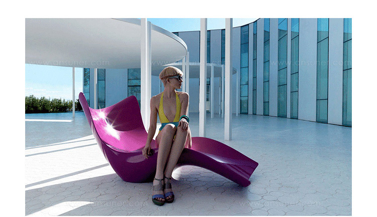 "波浪太阳椅由凯瑞德拉希德设计。它流动波浪型座位和支托,给人一种平静的感觉。运用这种柔软膨胀,流体姿态变化来改变活动的光线。设计者想要达到一种画布般的幸福感,并能唤起平静,漫不经心感觉,使人充满活力,令人耳目一新,宛若一个新的觉醒,升降全面推动力。"