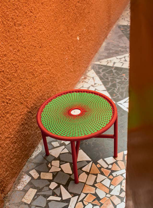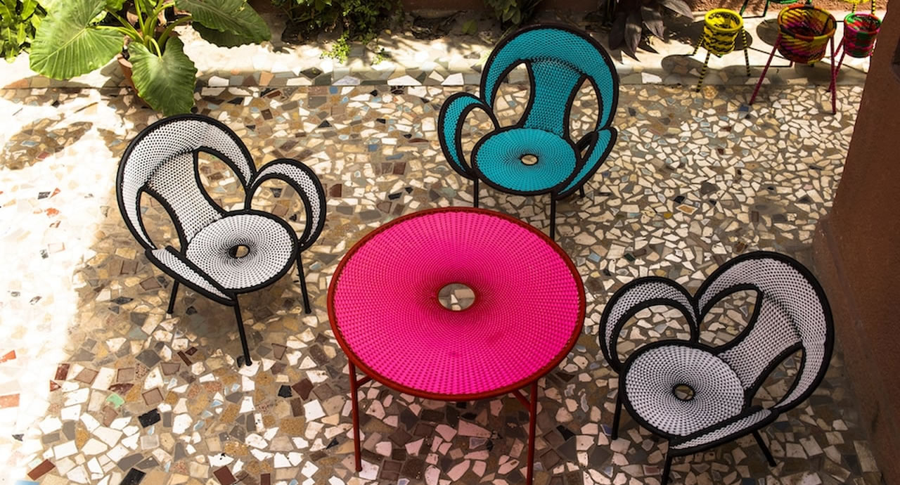 这个椅子的形状,尤其是扶手的形状设计,灵感来源于雄性鸵鸟在求偶时所跳的舞蹈,banjooli的扶手如同雄性鸵鸟伸出了翅膀,向雌性展示它们的美丽。Banjooli是M 'Afrique的一部分,由设计师设计的一系列椅子,由非洲手工编织者使用渔网的纱线生产。纯手工编织,不完美,但真实。