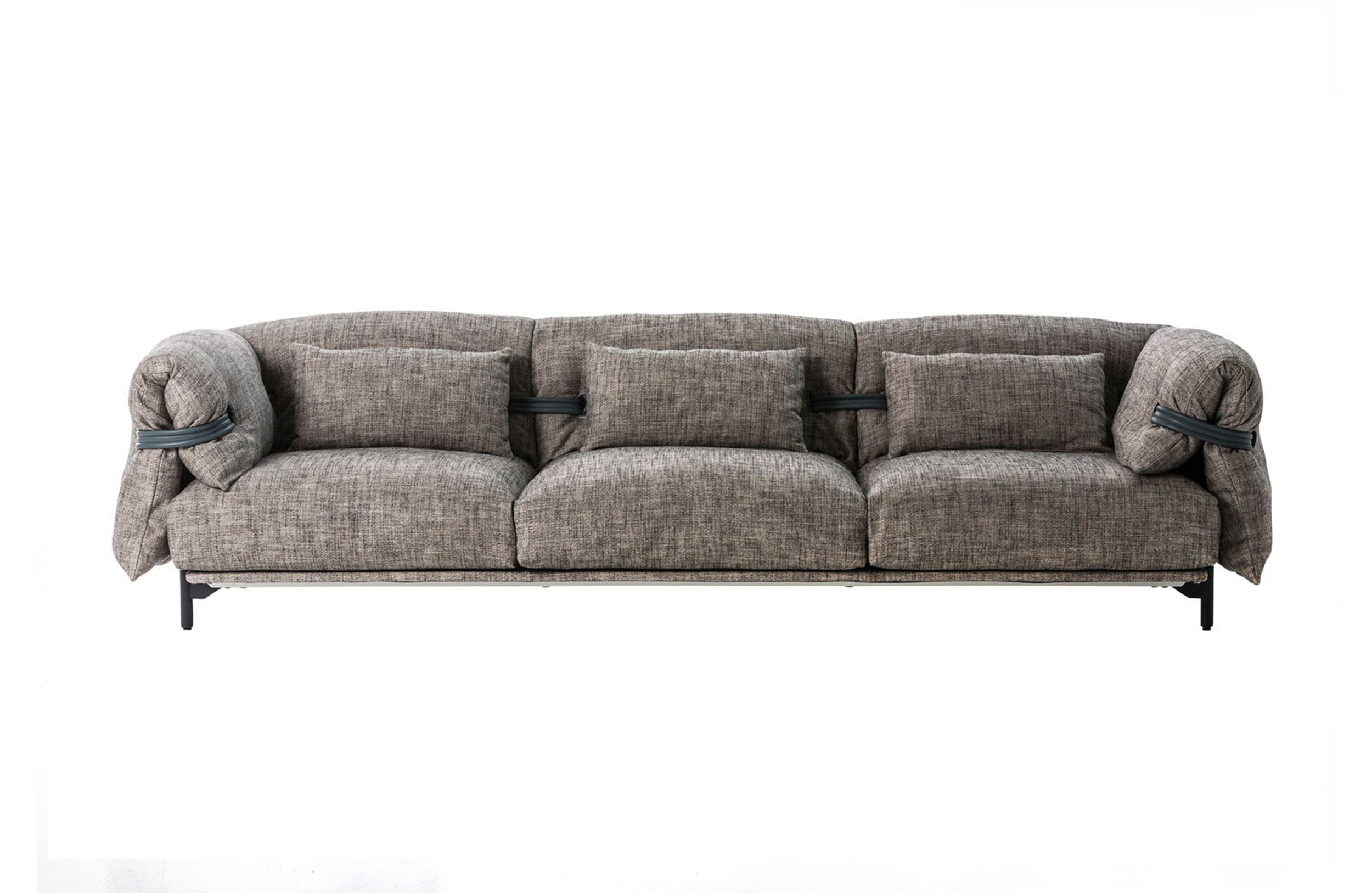 舒适和柔软高于一切。一个开源的沙发,一个喜欢舒适的座椅的设计选择,它试图看起来和感觉比以往更柔软和舒适。它的结构被圈在编织的腰带里与柔软的坐垫交织在一起,使其完全放松。折叠的覆盖层强调了无忧无虑、没有定义的形状,进一步强调了用针织物来固定它的位置。一个具有不寻常的结构的破坏式沙发:铝框架可以自由组合,组合不同的组件,一起工作,提供各种和谐的定制。