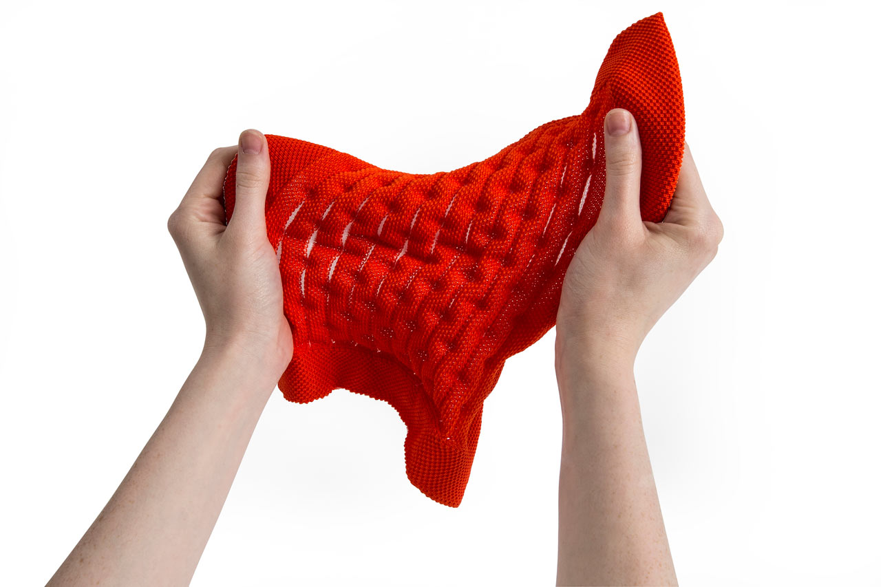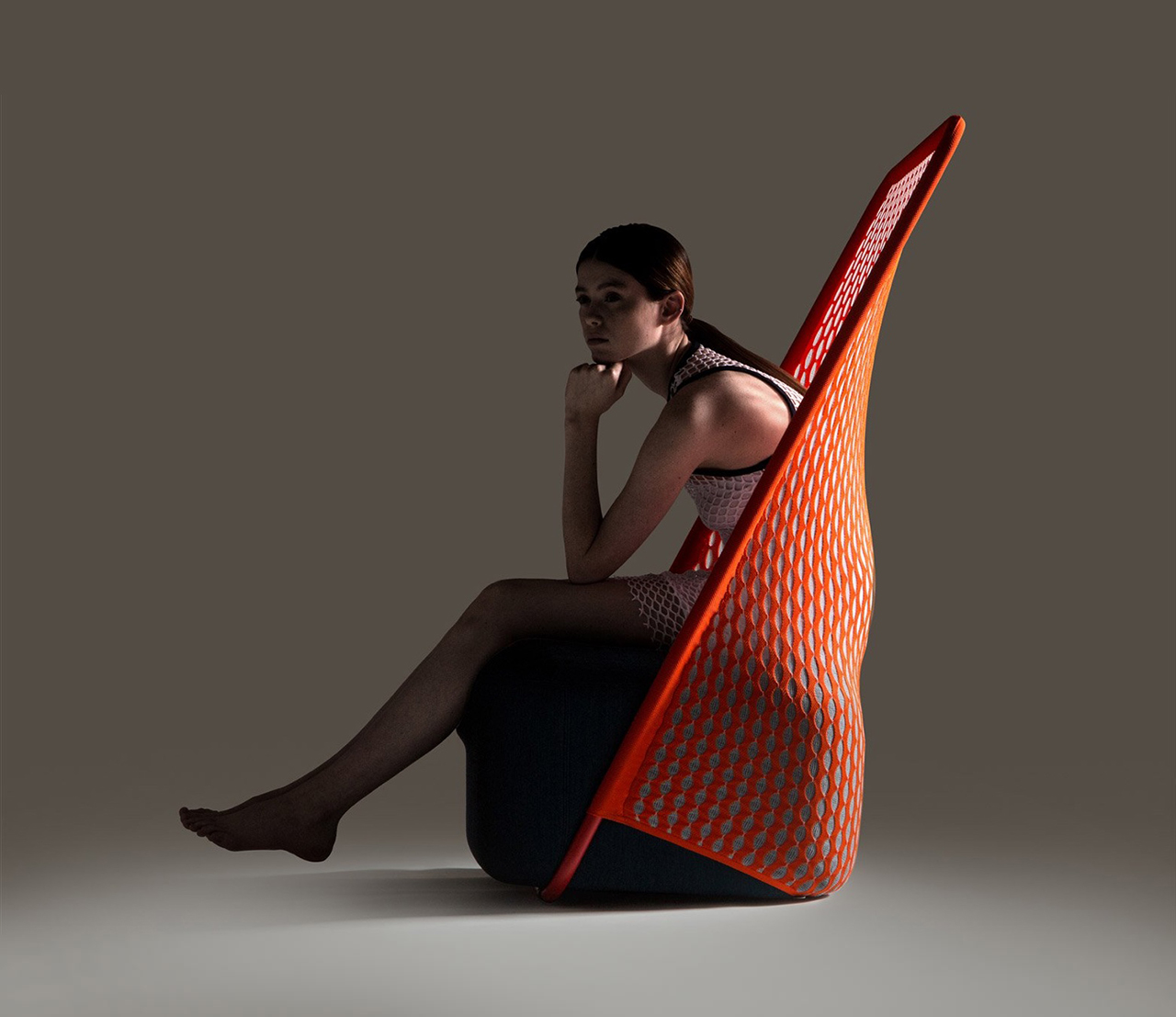 “摇篮”是两种类型座位的独特组合;一个网状结构吊床和一个传统的软垫沙发椅。扶手椅源于工作室的材料驱动、工艺主导、工业设计方法、网格材料的构建研究,以及传统座椅组件之间的关系研究。“摇床”采用了一种定制的剪裁模式,允许非弹性织物以三维的方式进行。这允许正确的张力,舒适地支持身体和视觉上和身体上减少产品的重量。