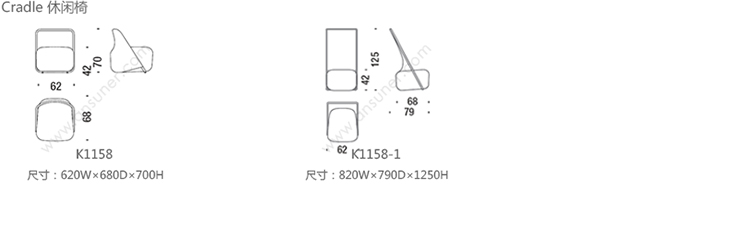 Cradle 休闲椅 系列尺寸/示意图