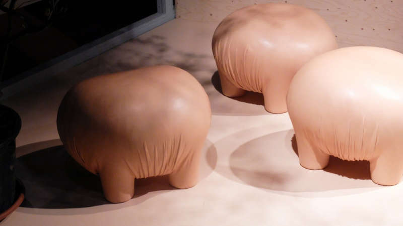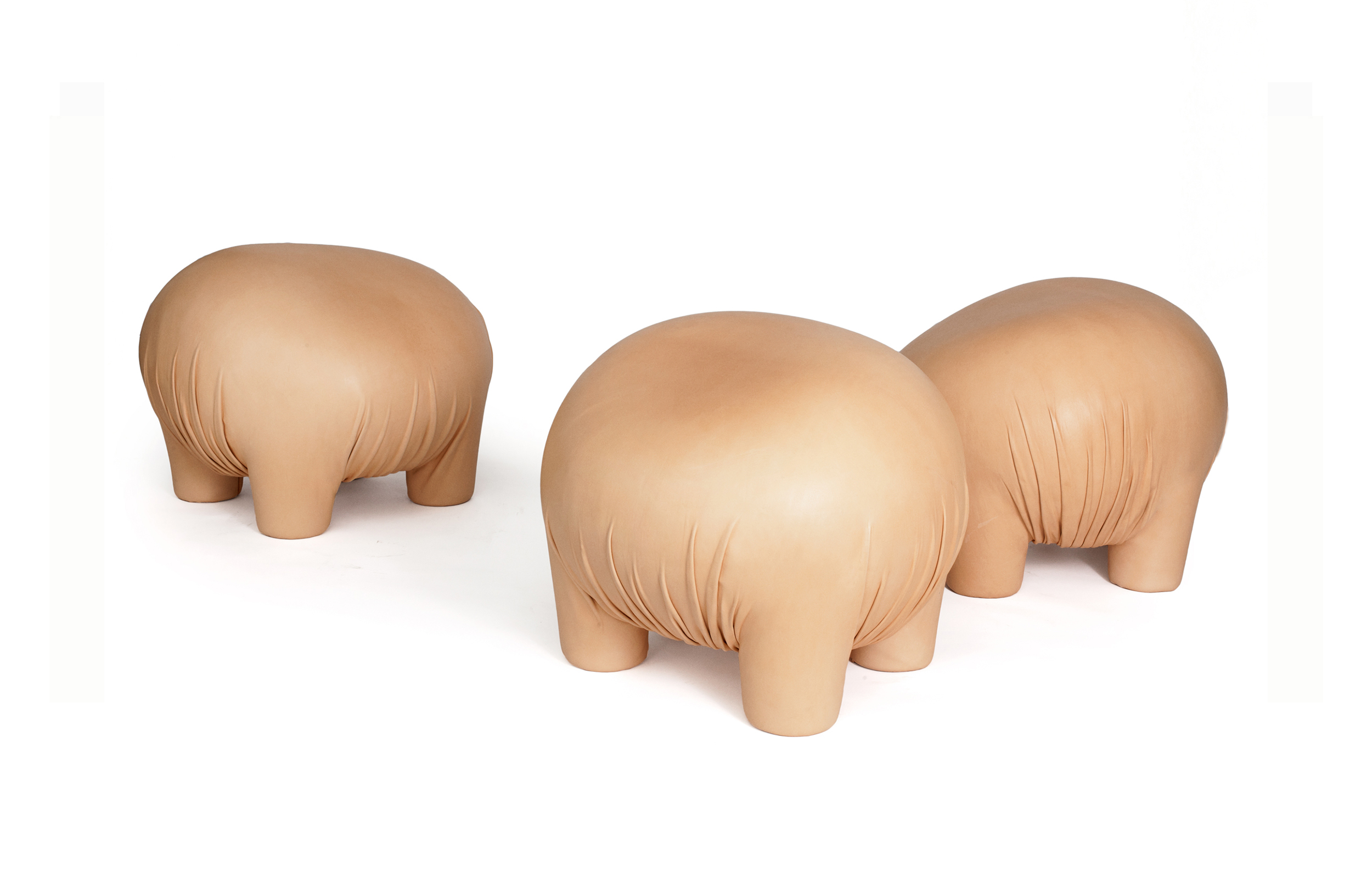 有点令人不安但又温顺又无害的生物。“异常”是一个充满矛盾的项目,它介于对身体的想象和对家庭宠物的设计之间。自然色皮革的选择可以解释为一种暧昧的、神秘的动物变形,或者更简单的说,颜色可以作为一种温暖的、令人安心的面部粉的提醒。这是一个令人惊奇的家庭生物,一个童话般的变形,几乎是超现实的,它结合了一个物体的实用性和好玩的刺激。