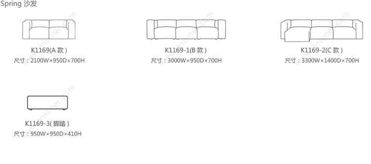 Spring 沙发 系列尺寸/示意图