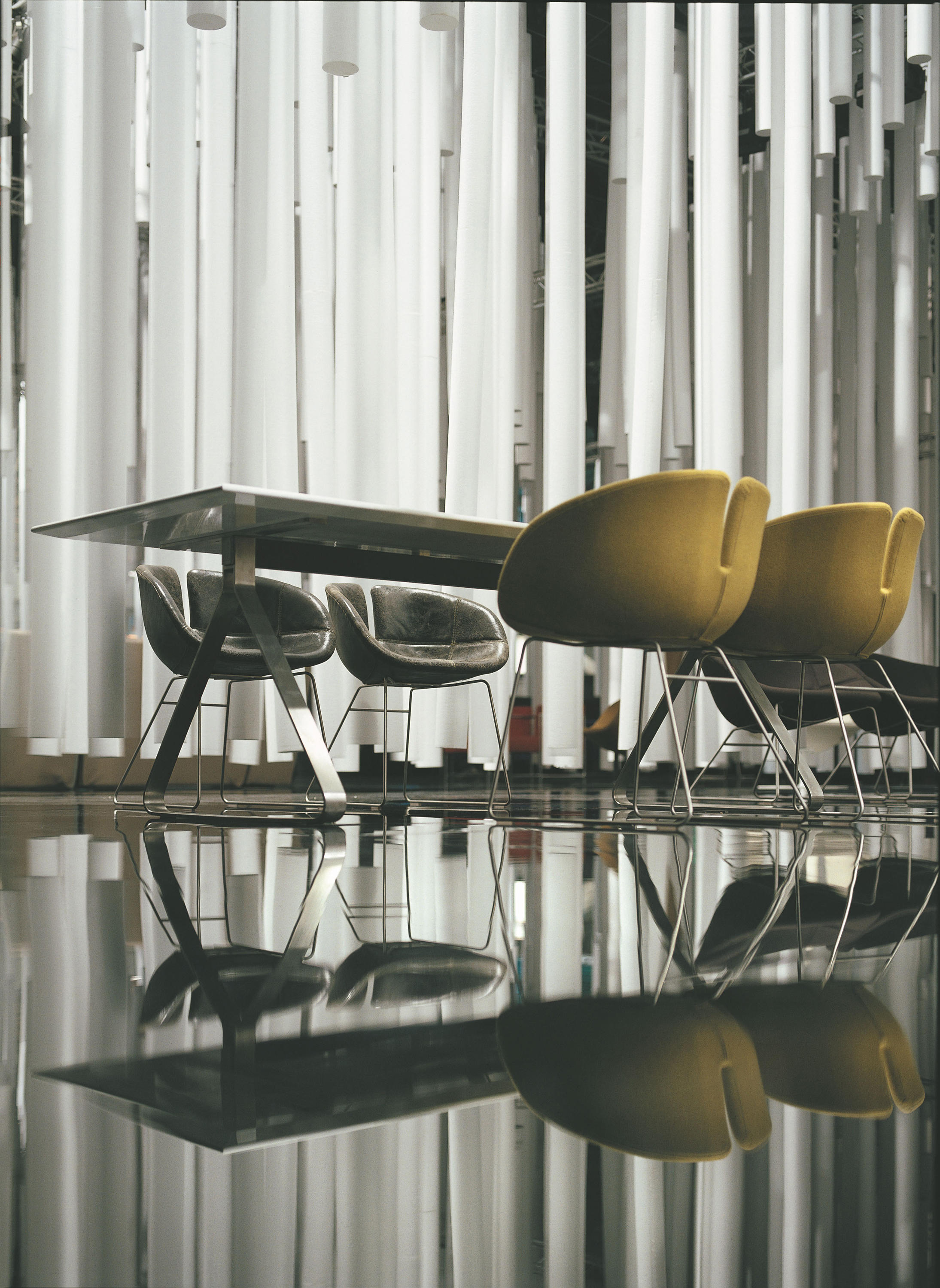 帕特里夏·乌尔基奥拉(Patricia Urquiola)从一块被海浪冲垮、平整的贝壳上,设计了一套适合家庭和公共场所的座椅。正如它的名字所暗示的那样,北欧人对Arne Jacobsen和北部海岸线的入口有着强烈的影响。就像一个自然循环,在时间和水的作用下贝壳重生,椅子变成扶手椅,然后变成凳子。它破碎的外形和抽象的概念结合在一起,成为设计的对象:用装饰性的缝线将支撑和包络的光滑线条与椅子结构的精髓和谐地拼接在一起。
