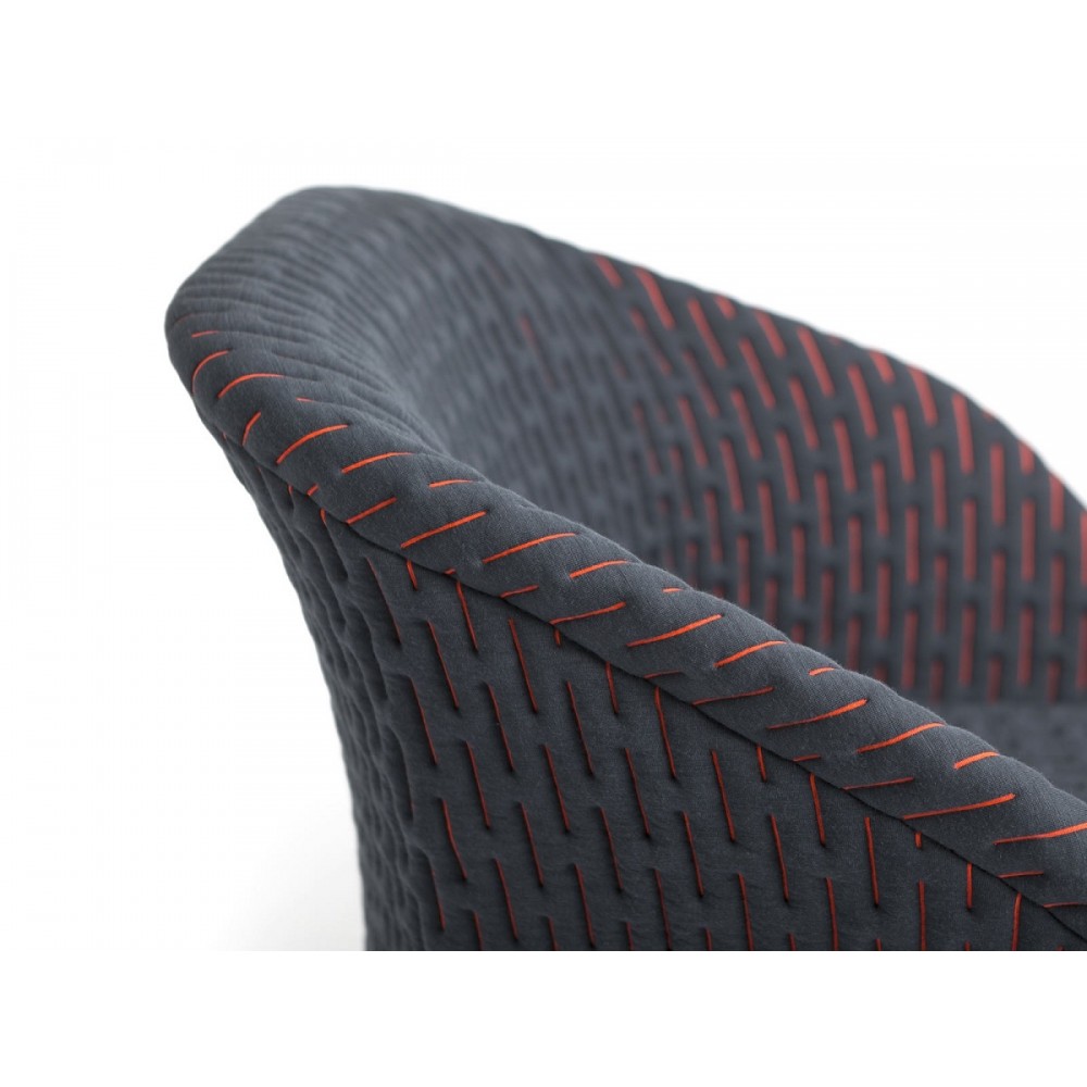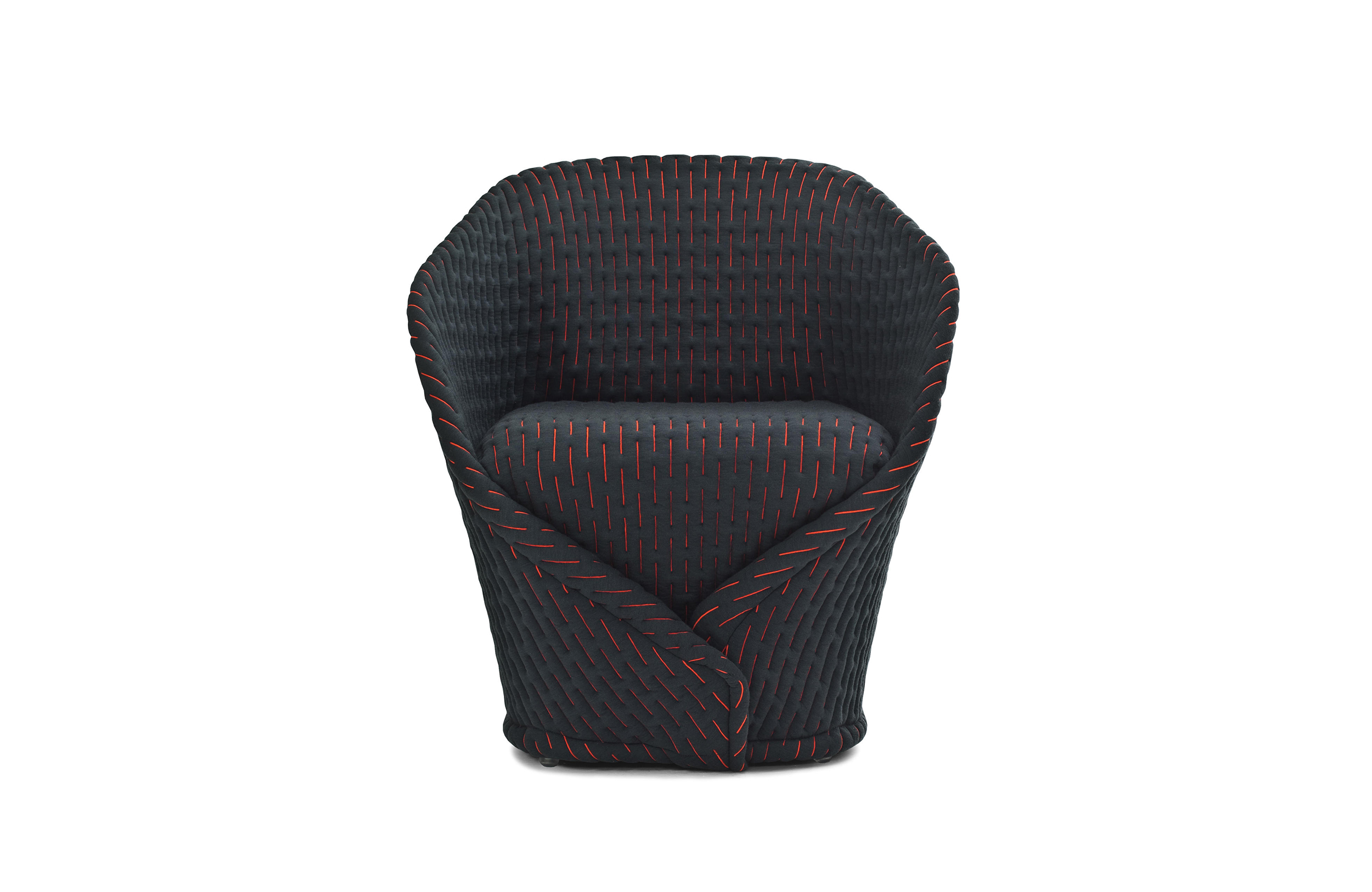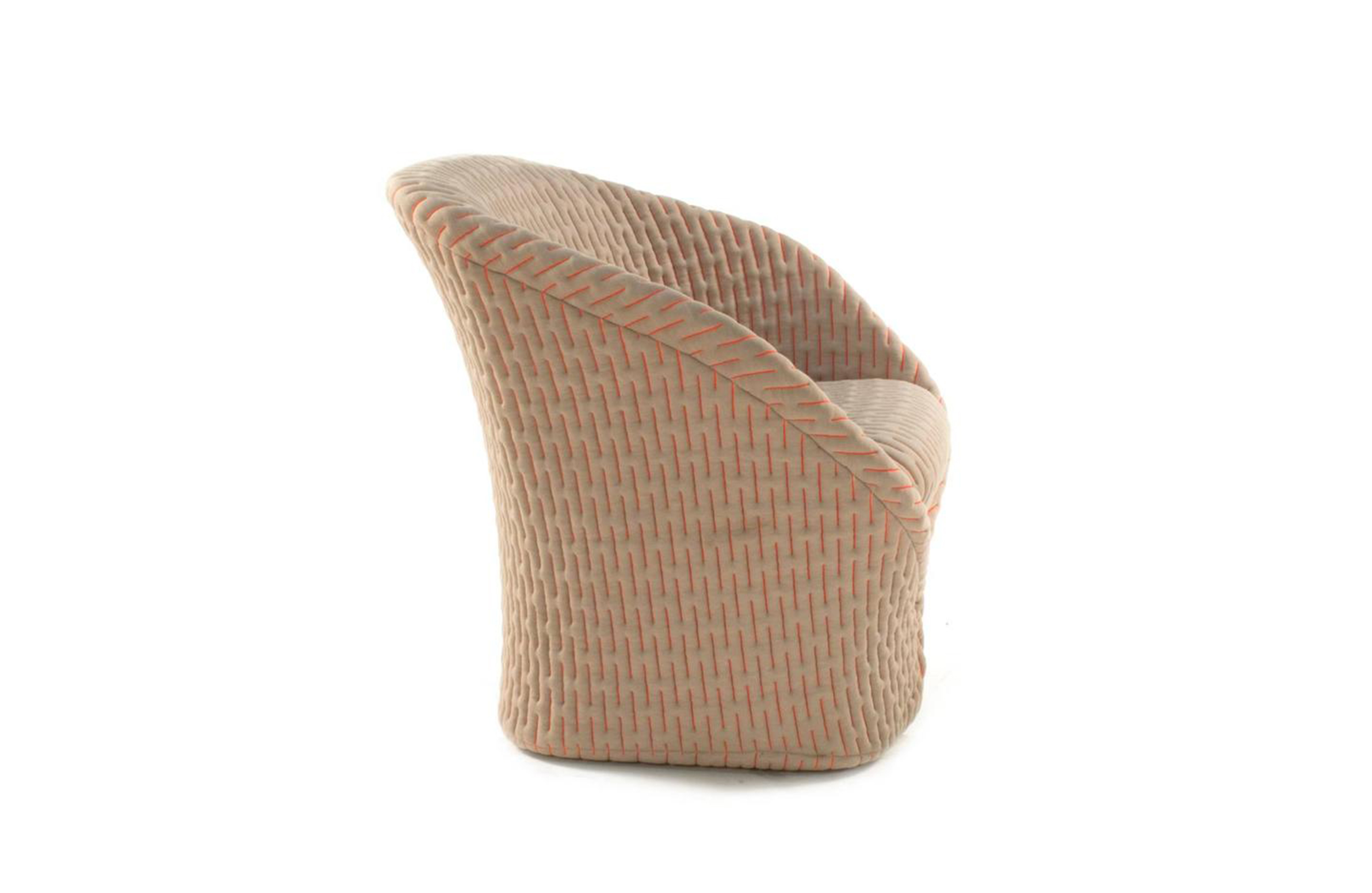 伪装成休闲椅的扶手椅,用他们的外表来控制空间。这主意很简单,用一件有衬垫的大衣盖住金属框架然后把它变成别的东西。一种非常直立的姿势,扶手的形状让人联想到双排扣外套的翻领,而这种相似之处就在中央扣扣上。室内装潢变成了衣服,可以在不过度的情况下,将赤裸的身体转变成一种追求自身内在同一性的物体。