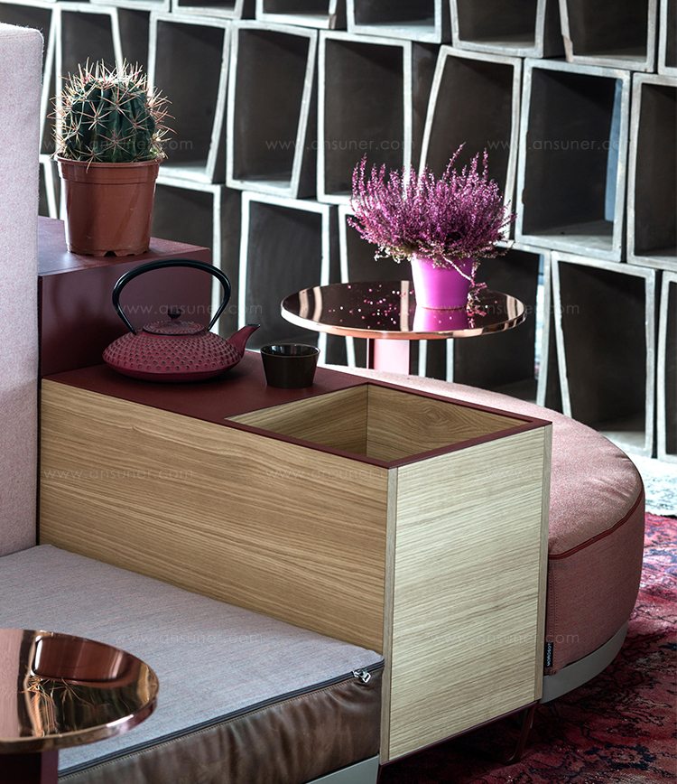 设计相互作用,轨迹控制空间。比基尼是一种风景,它是时代的产物,是它所代表的社会。无论是在等候区还是在家中使用,座位系统是绝对灵活的,因为不需要空间的布局和座位组件的排列。这些组件在外观和功能上各不相同,因此,它们可以在任何设置中使用。凳子、桌子、衣架、容器、架子、屏风、工作台、座椅:每一个元素都结合在一起,创造互动和交流。多种功能和含义的结合意味着沙发作为看电视的家具或简单的休息场所的概念发生了革命性的变化,使它成为互动的核心。
